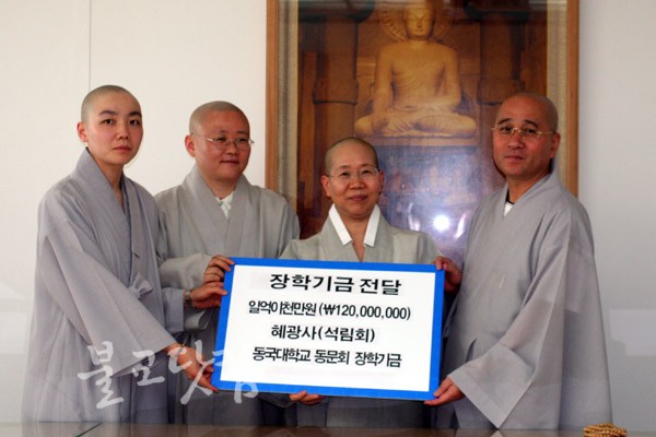 ¼®¸²µ¿¹®È¸Àå ¿µ´ã ½º´ÔÀº "Çý±¤»ç¸¦ ¼ö¸®Çϱâ À§ÇØ ¸ðÀº ¼ÒÁßÇÑ Á¤À縦 ÈĹèµéÀ» À§ÇÑ ÀåÇбâ±ÝÀ¸·Î ±â²¨ÀÌ º¸½ÃÇÑ ÇÐÀε鿡°Ô °í¸¿°í, ÇÑÆíÀ¸·Î ºÎ²ô·´´Ù"¸ç "ÀÌ ±â±ÝÀÌ ¹Ø°Å¸§ÀÌ µÇ¾î ÈĹèµéÀÌ ´õ ÁÁÀº ȯ°æ¿¡¼ °øºÎÇÒ ¼ö ÀÖ´Â ¿©°ÇÀ» ¸¸µé¾î°¡´Âµ¥ ÃÖ¼±À» ´ÙÇϰڴÙ"°í °Á¶Çß´Ù.