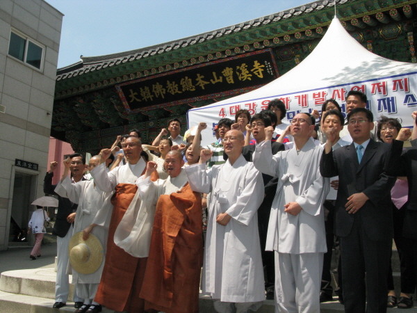 ºÒ±³È¯°æ¿¬´ë¸¦ ºñ·ÔÇØ ½ÇõºÒ±³Àü±¹½Â°¡È¸, ´ëÇѺұ³Ã»³âȸ µî 21°³ ´Üü°¡ Âü¿©ÇÏ´Â ºÒ±³½Ã¹Î»çȸ´Üü¿¬¼®È¸ÀÇ´Â ¿À´Ã(7¿ù24ÀÏ) ¿ÀÀü11½Ã ¼¿ï Á¶°è»ç ÀÏÁÖ¹® ¾Õ¿¡¼ ¡®4´ë°¿îÇϰ³¹ß»ç¾÷ ÀúÁö ºÒ±³°è õ¸·³ó¼º¡¯ ÀÔÀç½ÄÀ» °®°í, 4´ë° »ç¾÷ ¹Ý´ë¿¡ ºÒ±³°è°¡ Àû±Ø ³ª¼³ °ÍÀ» °áÀÇÇß´Ù. µµ¼±»ç, ºÀÀº»ç, ºÒ±¤»ç, ¿Áõ¾Ï, Ȱè»ç µî ¼¿ï ÁÖ¿ä »çÂû¿¡¼µµ ¿îÇÏ ¹Ý´ë ³ó¼º¿¡ µ¿ÂüÇϱâ·Î Çß´Ù.