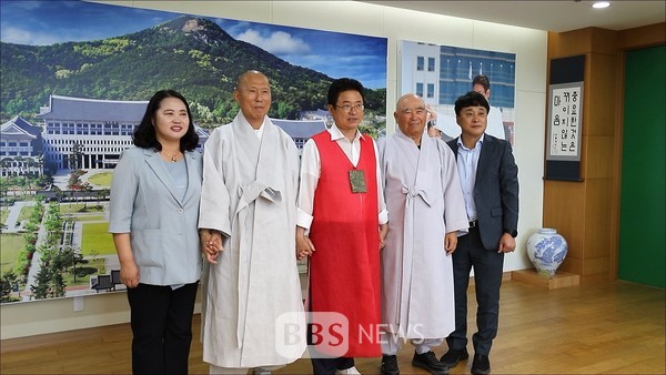 ´ëÀü»ç ÁÖÁö ¹ýÀϽº´Ô(BBS ´ë±¸ºÒ±³¹æ¼Û ¿î¿µÀ§¿øÀå)°ú Àΰ¢»ç ÁÖÁö È£¾Ï½º´Ô(ºÒ±³¹®ÈÀ翬±¸¼ÒÀå)Àº À̳¯ ÀÌö¿ì °æºÏµµÁö»ç¿¡°Ô ¼º±ÝÀ» Àü´ÞÇÑ µÚ Â÷´ãÀ» °¡Áö¸ç ÀúÃâ»ý ±Øº¹°ú ÀüÅë¹®È À¯»êÀÇ º¸Àü°ú °è½Â, Ȱ¿ë¿¡ ´ëÇÑ ÀǰßÀ» ±³È¯Çß½À´Ï´Ù.
