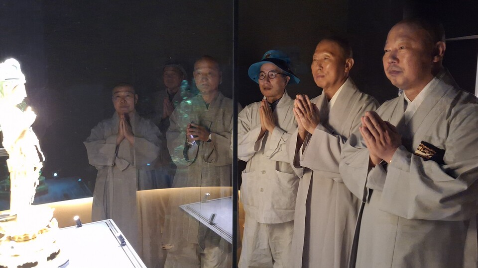 7¿ù9ÀÏ ±¹¸³Ãáõ¹Ú¹°°ü ±âȹÀü½Ã½Ç¿¡ ¸ðÀÎ ½º´ÔµéÀÌ Ãµ ³â ³Ñ°Ô Èë ¼Ó¿¡ ÆÄ¹¯Çô ÀÖ´ø ÅëÀϽŶóÀÇ ±Ýµ¿º¸»ì»ó ¾Õ¿¡¼ »ï¹èÀÇ ¿¹¸¦ ¿Ã·È´Ù. ¹Ú¹°°üÀº ÇöÀç ÅëÀϽŶó½Ã´ë »çÂûÅÍÀÎ ¾ç¾ç ¼±¸²¿øÁö¿¡¼ ÃâÅäµÈ ±Ýµ¿º¸»ìÀÔ»óÀ» Àü½Ã ÁßÀÌ´Ù.