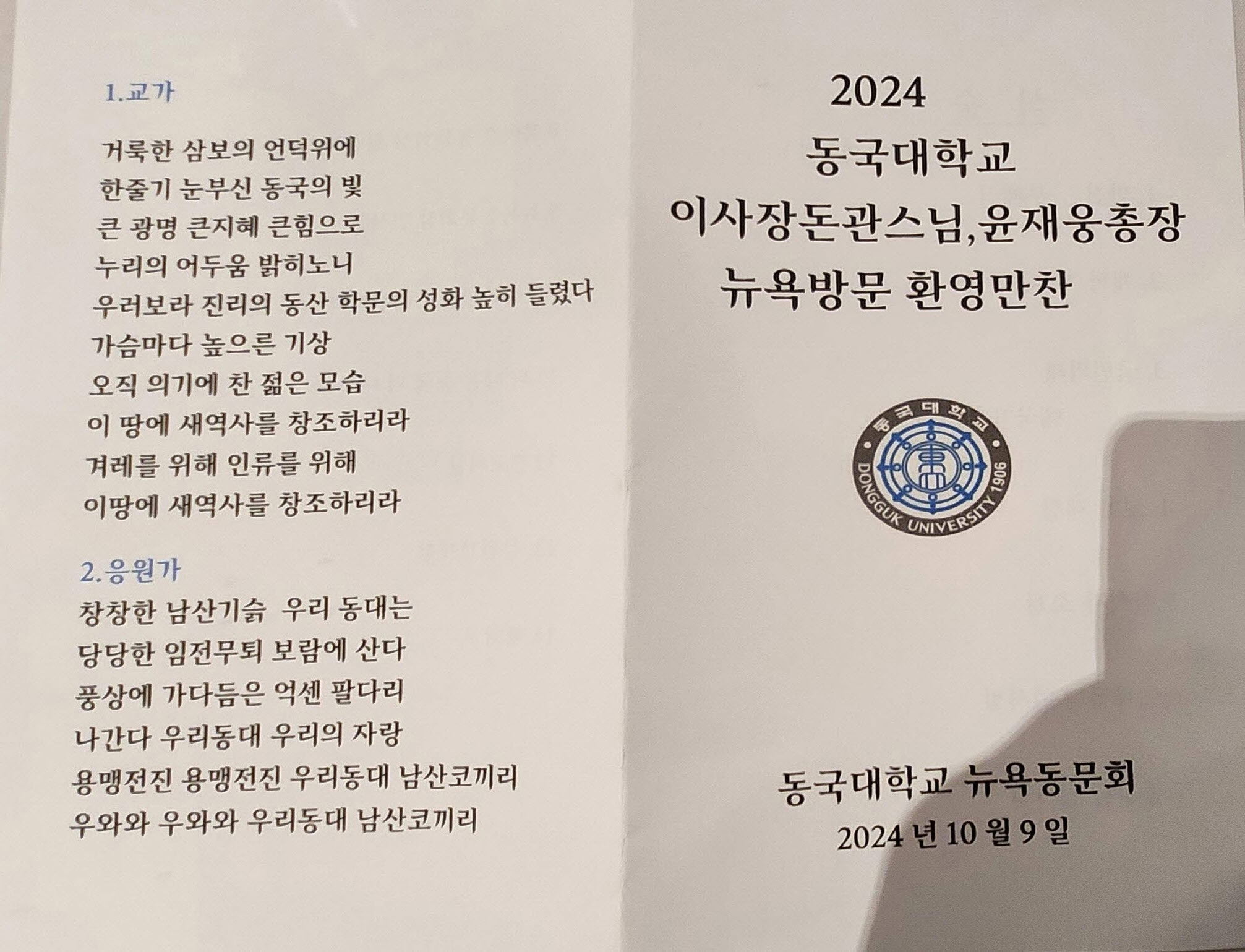µ¿±¹´ëÇб³ ´º¿å µ¿¹®È¸(ȸÀå ½Åâ±Õ)´Â 10¿ù 9ÀÏ ¿ÀÈÄ 6½Ã ´ºÀúÁö ÆÓ¸®¼¼ÀÌÁîÆÅ¿¡ ÀÖ´Â ½Ã·ç ¿¬È¸Àå¿¡¼ µ¿±¹´ëÇб³ ÀÌ»çÀåµ·°ü½º´Ô, À±Àç¿õ ÃÑÀå ´º¿å¹æ¹® ȯ¿µ¸¸Âùȸ¸¦ °³ÃÖÇß´Ù.