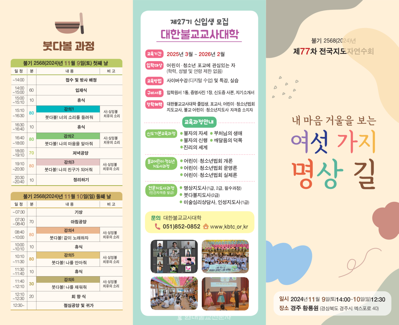 ¸í»óÁöµµÀÚ °úÁ¤ 50¸í º×´Ùº¼ °úÁ¤ 15¸í ÃÑ 65¸íÀ» ´ë»óÀ¸·Î ÇÏ´Â ¿¬¼öȸ´Â À°µµÀ±È¸¸¦ ¹ÙÅÁÀ¸·Î ÇÑ ¡®³» ¸¶À½ °Å¿ïÀ» º¸´Â ¿©¼¸ °¡Áö ¸í»ó ±æ¡¯À» ÁÖÁ¦·Î °³ÃֵȴÙ. °»ç·Î´Â ¼±¤ ½º´Ô, ¹æ¼±±Í, ¼Û¸»¼÷, ¼ÀºÁ¤ÀÌ ³ª¼±´Ù.