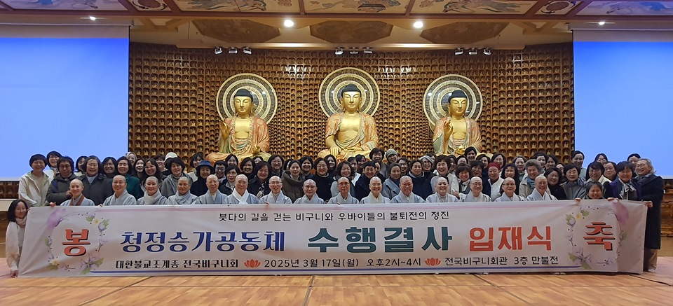ÀÔÀç½ÄÀº Àü±¹ºñ±¸´Ïȸ ¼ö¼®ºÎȸÀå ¼ö°æ½º´ÔÀÌ ¼öÇà°á»ç¹®À» ³¶µ¶ÇÏ¸é¼ ½ÃÀ۵ƴÙ. °á»ç¹®Àº ¡°¸¶ÇÏÆÄÀÚÆÄÆ¼¿Í ¼®°¡Á· ¿©¼ºµéÀÇ Ãâ°¡ ÀÌÈÄ, ¿©¼º ¼öÇàÀÚµéÀº ºÒ±³¿ª»çÀÇ ¸ðµç ¼ø°£¿¡ Âü¿©ÇÏ¸ç ²÷ÀÓ¾øÀÌ Á¤ÁøÇؿԴÙ. 2500¿©³âÀÌ Áö³ ¿À´Ã ¿ª½Ã ¿ª»çÀÇ ÇÑ ¼ø°£À¸·Î ±â·ÏµÉ °Í¡±À̶ó°í õ¸íÇß´Ù. Àü±¹ºñ±¸´ÏȸÀå ±¤¿ë½º´ÔÀº Àλ縻À» ÅëÇØ ¡°ºÎó´ÔÀÇ »ç»ó°ú ±Ùº» »Ñ¸®´Â ¼öÇàÀÌ¸ç ¼öÇàÀÇ Á߽ɿ¡ µé¾î°¡°Ô ÇϰíÀÚ ¿©·¯ ¹æÆíÀÌ ÀÖ´Ù¡±¸ç ¡°¿ì¸®´Â ºÎó´Ô ½Ã´ë°¡ ³Ê¹« ¸Ö´ÙÇÏÁö¸¸ ±× »ç»óÀ» °¡±îÀÌ ³» ¸öÀ¸·Î üÇèÇϰí ÀÏ»ó¿¡ Àû¿ëÇÏ¸é ºÎó´ÔÀÌ ¿ì¸® °ç¿¡ »ýÁ¸ÇÏ´Â °ÍÀ̳ª ´Ù¸§¾ø´Ù¡±°í Çß´Ù.