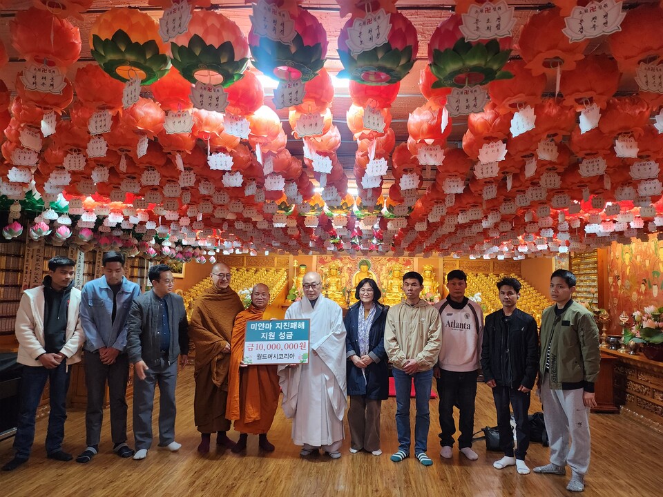 ±â±Ý Àü´Þ½ÄÀº 4¿ù13ÀÏ ¼¿ï ¿©ÀǵµÆ÷±³¿ø¿¡¼ ¿ùµå¸Ó½ÃÄÚ¸®¾Æ ´ëÇ¥ÀÌ»ç ÇöÁø½º´Ô, ¹Ì¾á¸¶ ´Ù¶ó¿Ñ»ç(Dhira Vamsa) ½º´Ô, ¹Ì¾á¸¶¿¬¹æ¹ÎÁÖÁÖÀÇ¿¬ÇÕ ¼Ò¼Ó ¹Ì¾á¸¶ û³âµé 10¿©¸íÀÌ ÇÔ²²ÇÑ °¡¿îµ¥ ÁøÇàµÆ´Ù.