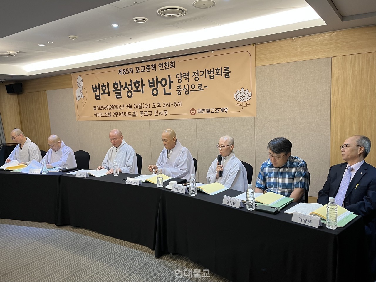 Á¶°èÁ¾ Ãѹ«¿ø Æ÷±³ºÎ(ºÎÀå Á¤¹« ½º´Ô)´Â 9¿ù 24ÀÏ ¼¿ï ¾Æ¹ÌµåÈ£ÅÚ 2Ãþ¿¡¼ ¡®Á¦85Â÷ Æ÷±³Á¾Ã¥ ¿¬Âùȸ¡¯¸¦ °³ÃÖÇß´Ù. ¡®¹ýȸ Ȱ¼ºÈ ¹æ¾È-¾ç·Â Á¤±â¹ýȸ¸¦ Áß½ÉÀ¸·Î¡¯¸¦ ÁÖÁ¦·Î ¿¸° À̹ø ¿¬Âùȸ´Â ¾ç·Â ¹ýȸÀÇ Çʿ伺À» ÀνĽÃ۰í, ¹ýȸÀÇ Çü½Ä°ú ³»¿ëÀÌ ¸ð¹üÀûÀÎ »ç·Ê¸¦ ¹ß±¼¡¤ÀüÆÄÇØ »çÂû ¹ýȸÀÇ È°¼ºÈ °è±â¸¦ ¸¸µé°íÀÚ ¸¶·ÃµÆ´Ù.