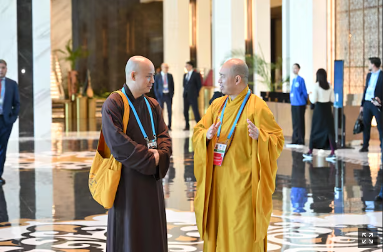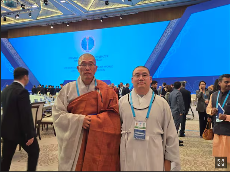 Ä«ÀÚÈ彺ź¿¡¼ ¿¸° ¼¼°èÀüÅëÁ¾±³ÁöµµÀÚȸÀÇ¿¡¼ Á¤¹ü½º´ÔÀÌ Á¶°èÁ¾ Áø¿ì Ãѹ«¿øÀåÀÇ ¸Þ½ÃÁö¸¦ ´ëµ¶Çϰí ÀÖ´Ù. /Á¤Áö¼· ±âÀÚ