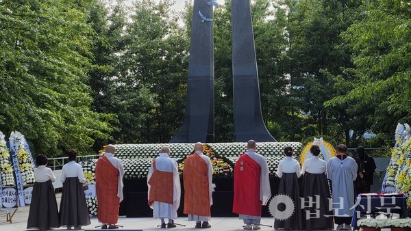 À̳¯ ÀǽÄÀº °Á¦ µ¿¿øÀ¸·Î Èñ»ýµÈ ¿µ·ÉµéÀÇ ³ÌÀ» À§·ÎÇϰí À¯Á·µéÀÇ ¾ÆÇÄÀ» ÇÔ²² ³ª´©¸ç, ´Ù½Ã´Â ¿ª»çÀû ºñ±ØÀÌ ¹Ýº¹µÇÁö ¾Ê±â¸¦ ±â¿øÇÏ´Â ÀÚ¸®·Î ¸¶·ÃµÆ´Ù. ÀÌ ÀÚ¸®¿¡´Â ºÎ»ê ³²±¸ºÒ±³¿¬ÇÕȸ ȸÀåÀÌ¸ç ¹®¼ö»ç ÁÖÁö Áö¿ø ½º´ÔÀ» ºñ·ÔÇØ ¹«¹®È«¹ý»ç ÁÖÁö È£¸í ½º´Ô, ´ë¿¬»ç ÁÖÁö Çý±¤ ½º´Ô, ¿Áõ¾Ï ÁÖÁö ´ë°¢ ½º´Ô µî ³²±¸ºÒ±³¿¬ÇÕȸ ȸÀå´Ü ½º´ÔµéÀÌ ÇÔ²²Çß´Ù.