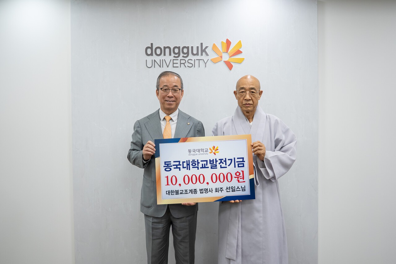 ¹ý¸í»ç ȸÁÖ ¼±ÀϽº´ÔÀº 29ÀÏ µ¿±¹´ëÇб³ À±Àç¿õ ÃÑÀå°ú ¸¸³ª ·ÎÅͽº°ü °Ç¸³±â±ÝÀ¸·Î õ¸¸ ¿øÀ» Àü´ÞÇÏ¸ç ±âºÎÁõ¼¿¡ ¼¸íÇß½À´Ï´Ù.