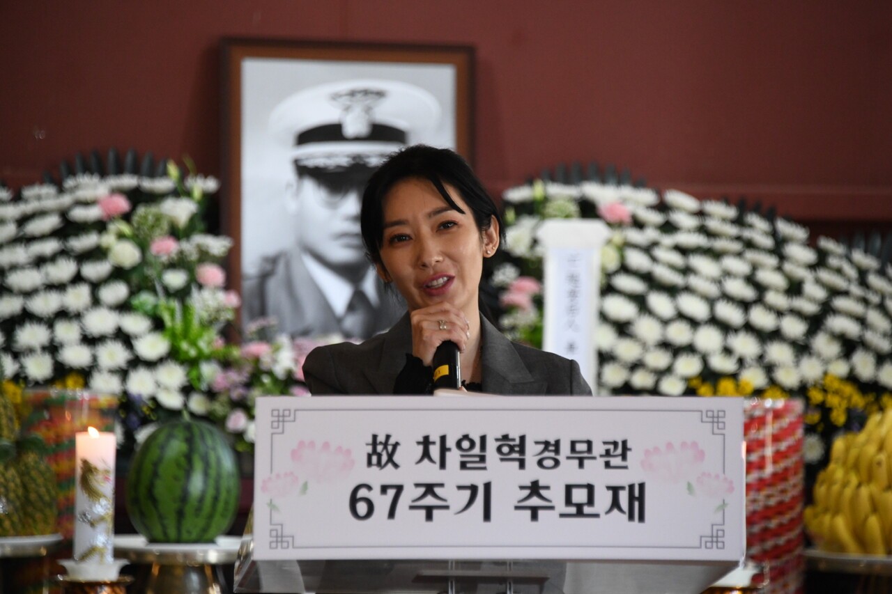 Â÷ÀÏÇõ °æ¹«°üÀÇ ¼Õ³àÀÌÀÚ ±â³ä»ç¾÷ȸ Â÷¼Ò¿µ ȸÀåÀº ¡°Á¶ºÎ´ÔÀº ´ÜÁö ÇÑ »çÂûÀ» ÁöŲ ºÐÀÌ ¾Æ´Ï¶ó ³ª¶ó¸¦ »ç¶ûÇÏ°í ¹®ÈÀÇ °¡Ä¡¸¦ ÁöÄѳ½ È£±¹¿µ¿õÀ̾ú´Ù¡±¸ç ¡°±×ºÐÀÇ Èñ»ý°ú ³ª¶ó»ç¶û Á¤½ÅÀ» ÀØÁö ¾Ê°í Èļ¼¿¡ ±æÀÌ ÀüÇϰڴ١±°í ´ÙÁüÇß´Ù.