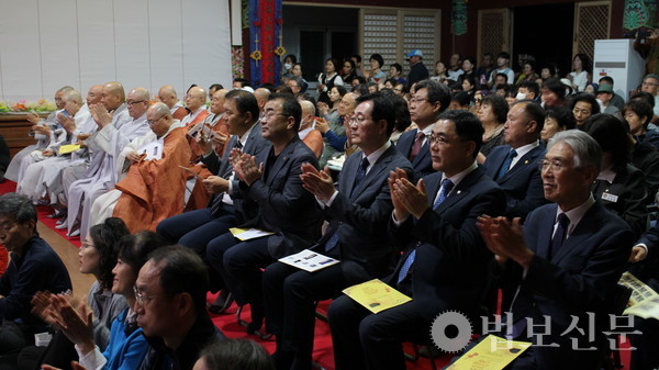 Çà»ç¿¡´Â ¼ºÁÖ»ç ÁÖÁö ¹ý¾È ½º´Ô(â¿øÆ¯·Ê½Ã ºÒ±³¿¬ÇÕȸ ȸÀå), â¿øºÒ±³¿¬ÇÕȸ °í¹® µµÈ« ½º´Ô(ºÒ°î»ç ÁÖÁö) µî â¿øºÒ±³¿¬ÇÕȸ ȸÀå´Ü ½º´Ôµé°ú Àå±Ý¿ë â¿ø½ÃÀå ±ÇÇÑ´ëÇà, ¹ÚÀϵ¿ °æ³²µµ ¹®ÈüÀ°±¹Àå, ¹Îȫö, Ç㼺¹« ±¹È¸ÀÇ¿ø, ÀÌ»ó¿¬ ¼ºÁÖ»ç ½ÅµµÈ¸Àå(â¿øºÒ±³ÃÑ¿¬ÇսŵµÈ¸ ȸÀå) µî³»ºóµéÀÌ Âü¼®Çß´Ù.