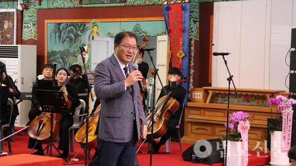 ¼ºÁÖ»ç ÁÖÁö ¹ý¾È ½º´ÔÀº ¡°»ê»çÀ½¾Çȸ´Â ºÒ¸ð»êÀÇ ÀÚ¿¬°ú ÀüÅë¹®È, ¿¹¼úÀÌ ¾î¿ì·¯Áö´Â ÀÚ¸®·Î, ½Ã¹Î ¸ðµÎ°¡ ¸¶À½ÀÇ Æò¾ÈÀ» ¾ò´Â ½Ã°£ÀÌ µÇ±æ ¹Ù¶õ´Ù¡±¸ç ¡°À½¾ÇÀ» ÅëÇØ ºÒ±³¹®ÈÀÇ ¾Æ¸§´Ù¿ò°ú ÀÚºñÁ¤½ÅÀ» ³Î¸® ÀüÇϰíÀÚ ÇÑ´Ù¡±°í ÀüÇß´Ù.