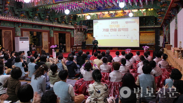 â¿ø ºÒ¸ð»ê ÀÚ¶ôÀÇ Ãµ³â°íÂû ¼ºÁÖ»ç(ÁÖÁö ¹ý¾È ½º´Ô)°¡ 10¿ù 18ÀÏ °æ³» ¼³¹ýÀü¿¡¼ ¡®2025 °¡À»»ê»ç¹®ÈÁ¦ »ê»çÀ½¾Çȸ¡¯¸¦ °³ÃÖÇß´Ù. À̹ø À½¾Çȸ´Â ºÒ±³À½¾Ç°ú Ŭ·¡½Ä, ´ëÁßÀ½¾ÇÀÌ ¾î¿ì·¯Áø ´Ùä·Î¿î ¹«´ë·Î ²Ù¸çÁ®, °¡À» Àú³á »ê»çÀÇ °íÁî³ËÇÑ Á¤Ãë ¼Ó¿¡¼ ½Åµµ¿Í ½Ã¹ÎµéÀÌ ÇÔ²² ¾î¿ï¸®´Â ÀÚ¸®°¡ µÆ´Ù.