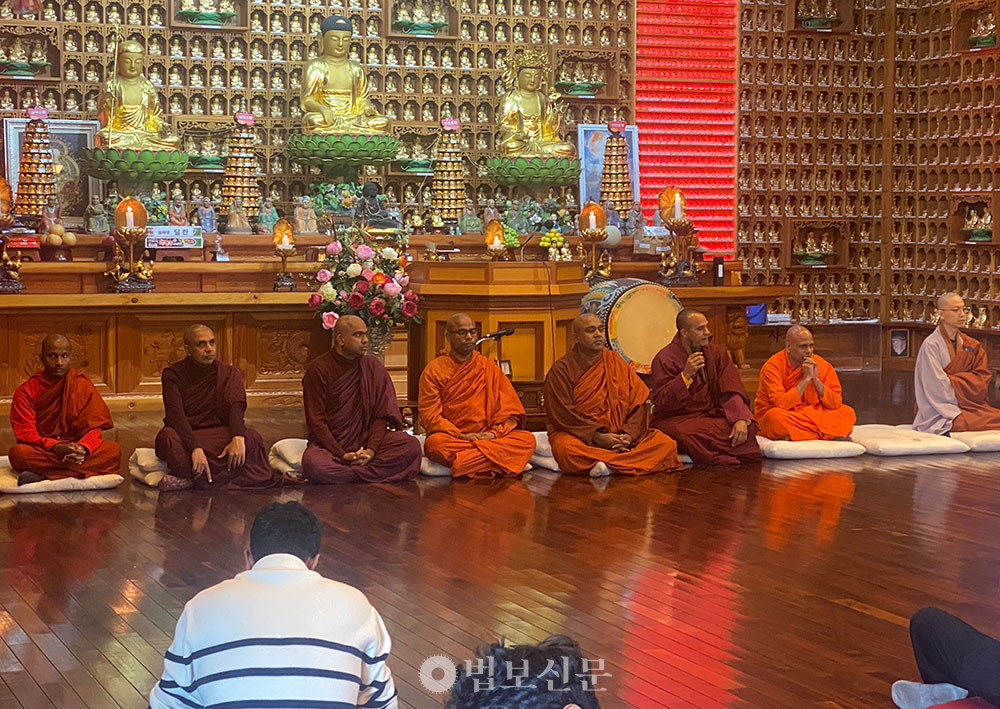 ¹ýȸ¿¡´Â ¼ö¸¶³ª ½º´Ô°ú ÆÄµÎ¸¶ ½º´ÔÀ» ºñ·ÔÇØ Àü±¹ °¢Áö¿¡¼ ÃÊûµÈ 8¸íÀÇ ½º¸®¶ûÄ« ½º´Ô°ú ÂüÁÁÀº¿ì¸®Àý ÅÂ»ê ½º´ÔÀÌ Âü¼®Çß´Ù. ºÎó´Ô²² ¿Ã¸®´Â ʹ߰ú ¿¹ºÒ ÀǽÄÀ¸·Î ½ÃÀÛµÈ ¹ýȸ´Â ½º´ÔµéÀÇ Çà·Ä°ú ¼³¹ý, °ø¾çÀ¸·Î À̾îÁ³´Ù. ºÒÀÚµéÀº °¨»çÀÇ ¶æÀ» ´ã¾Æ À½½ÄÀ» ¿Ã¸®°í ¼±¹°À» °ø¾çÇÏ¸ç ºÎó´Ô ÀÚºñÀÇ °ø´öÀ» ÇÔ²² ³ª´³´Ù.