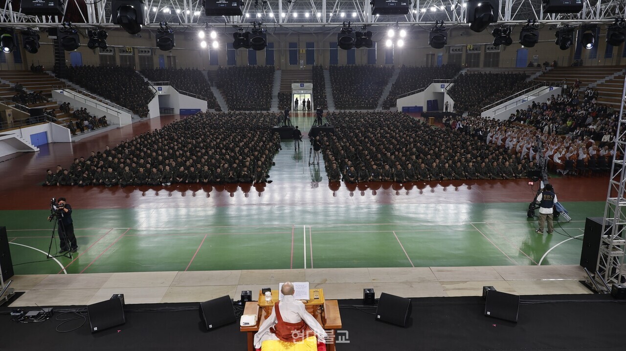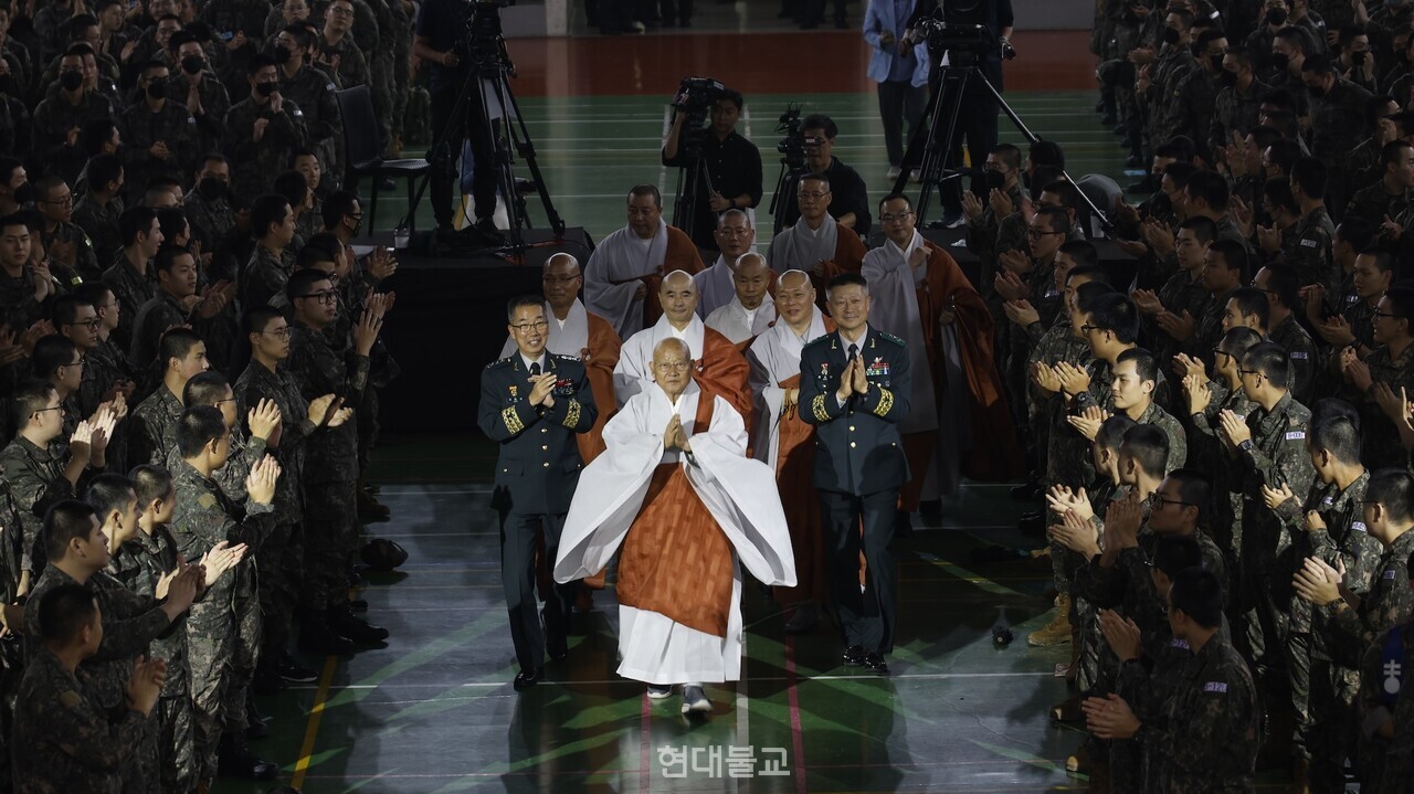 1ºÎ ¼ö°è¹ýȸ¿¡¼ ¹ý¼®¿¡ ¿À¸¥ ¼ºÆÄ ½º´ÔÀº ¡°±º À庴 ¿©·¯ºÐ! ¸ðµÎ °Ç°ÇÏ½Ã±æ ¹Ù¶ø´Ï´Ù¡±¶ó´Â ÇѸ¶µð·Î ¹ý¹®À» ´ë½ÅÇß´Ù. ½º´ÔÀÇ ´ö´ã¿¡ À庴µéÀº ¡°Å«½º´Ô!¡±À» ¿¬È£Çϸç ȯȣ¸¦ º¸³Â´Ù.
