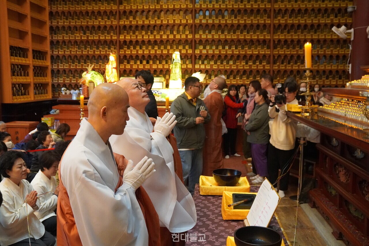 À̽ÂÇö Á¶°è»ç ÃѽŵµÈ¸Àå.ÁÖÁö ´ãÈ ½º´ÔÀº À̹ø ºÒ»ç¸¦ À§ÇØ ÇÔ²² Á¤ÁøÇÑ ½º´Ôµé°ú ºÒÀڵ鿡°Ô ±íÀº °¨»ç¸¦ ÀüÇß´Ù. ±×·¯¸é¼ ¡°¾Æ¹ÌŸºÎó´ÔÀº ¾î·Á¿ò°ú °íÅëÀ» ÇìÃijª°¥ ¼ö ÀÖµµ·Ï ¿ì¸®¸¦ ÀεµÇϸç, ¹«·®ÇÑ »ý¸í°ú ÀÚºñ¸¦ º£Çª½Ã´Â ºÎó´Ô¡±À̶ó¸ç ¡°20³â µ¿¾È ¿Ê ÇÑ ¹ú·Î ¿ì¸® °çÀ» ÁöÄÑ¿À¸ç °íÅë¿¡¼ ¹þ¾î³¯ ¼ö ÀÖµµ·Ï À̲ø¾î ÁֽŠ¾Æ¹ÌŸºÎó´Ô²² ´Ù½Ã ±¤¸íÀ» ÀÔÇôµå¸° ¿À´ÃÀÌ ÂüÀ¸·Î ÁÁÀº ³¯¡±À̶ó°í Àǹ̸¦ ÀüÇß´Ù. ÀÌ¾î ¡°¾à»ç¿©·¡ºÎó´Ô°ú ¼®°¡¸ð´ÏºÎó´Ô °³±ÝºÒ»çµµ Â÷·Ê·Î ÁøÇàÇÒ ¿¹Á¤ÀÌ´Ï, ºÒÀÚ ¿©·¯ºÐ ¸ðµÎ°¡ ÈûÀ» ¸ð¾Æ ´Þ¶ó¡±°í ´çºÎÇß´Ù.