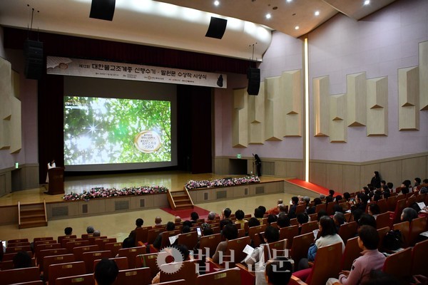 ¡®Á¦12ȸ Á¶°èÁ¾ ½ÅÇà¼ö±â¡¤¹ß¿ø¹® °ø¸ðÀü ½Ã»ó½Ä¡¯ÀÌ 11¿ù 4ÀÏ µ¿±¹´ë ¼¿ïÄ·ÆÛ½º Áß°´ç ³²»êȦ¿¡¼ °³ÃֵƴÙ. Á¶°èÁ¾ Á߾ӽŵµÈ¸(ȸÀå Á¤¿øÁÖ)°¡ ÁÖÃÖÇÏ°í ¹ýº¸½Å¹®(´ëÇ¥ ÀÌÀçÇü)°ú BBSºÒ±³¹æ¼Û(»çÀå ¼Áø¿µ)ÀÌ °øµ¿ÁÖ°üÇÑ À̳¯ ½Ã»ó½Ä¿¡´Â Ãѹ«¿øÀå Áø¿ì, È£°è¿øÀå Á¤¹¬, µ¿±¹´ë ÀÌ»çÀå µ·°ü, Æ÷±³ºÎÀå Á¤¹«, ÀÏ»ó¹ß¿ø½Çõȸ Ãѹ« ¼±È£ ½º´Ô µîÀÌ Âü¼®Çß´Ù. ¶Ç ÇÑ¿µ¿ë Áß½Åȸ ºÎȸÀå, ±èÇÐ±Ô Á÷ÇÒ±³±¸½ÅµµÈ¸Àå, ±è¿µ¼® Æ÷±³»ç´ÜÀå, ±èÀÇÁ¤ Àü±¹¿©¼ººÒÀÚȸÀå, Á¤¿µ½Ä µ¿±¹´ë ±âȹºÎÃÑÀå, ÀÌÀçÇü ¹ýº¸½Å¹® ´ëÇ¥, ±èÇü±Ô ÀÏÀϽÃÈ£ÀÏ ´ëÇ¥, ¼Áø¿µ BBSºÒ±³¹æ¼Û »çÀåÀ» ºñ·ÔÇØ ¼ö»óÀÚ 14¸íµµ ÀÚ¸®ÇØ °Ý·Á¿Í ÃàÇϸ¦ ÀüÇß´Ù.