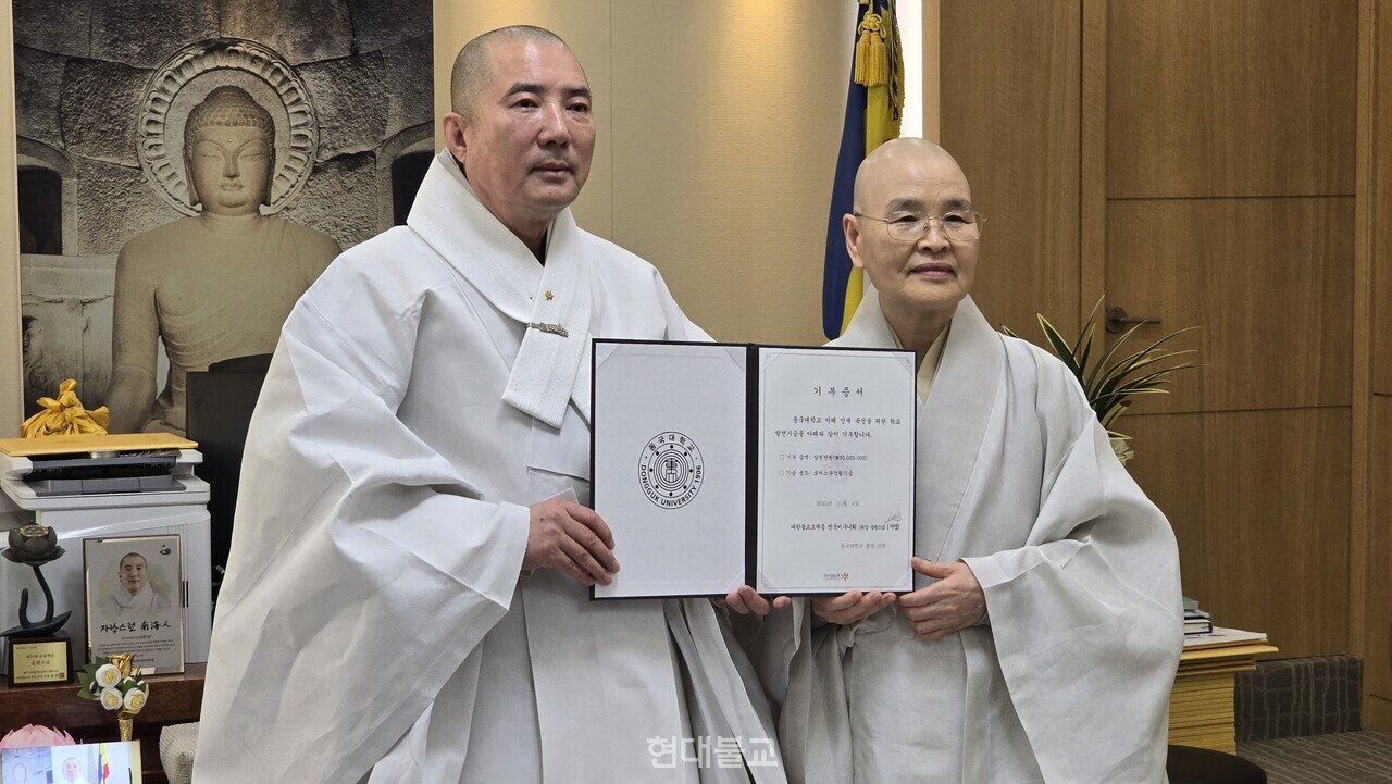 Á¶°èÁ¾ Àü±¹ºñ±¸´ÏȸÀå ±¤¿ë ½º´Ô(¿À¸¥ÂÊ¿¡¼ ¼¼ ¹øÂ°)´Â 11¿ù 4ÀÏ µ¿±¹´ë ÀÌ»çÀå µ·°ü ½º´Ô(°¡¿îµ¥)¿¡°Ô ·ÎÅͽº°ü °Ç¸³±â±Ý 3000¸¸¿øÀ» Àü´ÞÇß´Ù.