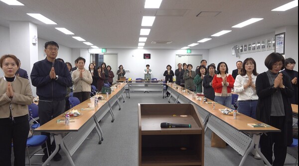Á¦ÁÖµµ »çÂû¹®ÈÇØ¼³»çȸ ±èº¸¼º ȸÀåÀº ºÒ±³´Â Àλý¿¡¼ ³»°¡ ÁÖÀΰøÀÓÀ» ÀÚ°¢ÇÏ´Â Á¾±³ÀÌÁö ¿ÜºÎÁ¶°ÇÀ̳ª ŸÀÎ, ½ÅÀ» ÀÇÁöÇÏ´Â Á¾±³°¡ ¾Æ´Ï¶ó¸ç 7±â ¼ö·á°¡ ³¡³ª¸é¼ ³»ÀλýÀÇ ÁÖÀΰøÀ¸·Î¼ ½º½º·Î °³Ã´Çϰí ÃæºÐÈ÷ Çàº¹ÇØÁú ¼ö ÀÖ´Ù´Â °ÍÀ» ±ú´Ý±â¸¦ ¹Ù¶õ´Ù"¸ç ÀÀ¿øÀÇ ¸»À» ÀüÇß½À´Ï´Ù.