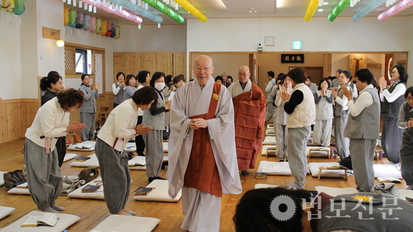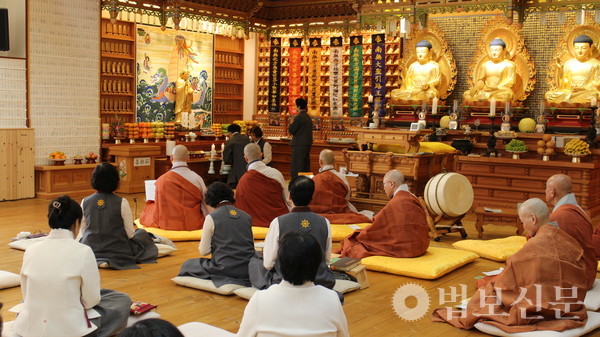 À̳¯ ¹ý¼®¿¡´Â Àü Á¶°èÁ¾ °í½ÃÀ§¿øÀå Áö¾È ´ëÁ¾»ç°¡ ¹ý¹®À» ¼³ÇØ Á¡¾È ´ë¹ýȸÀÇ Àǹ̸¦ ´õ¿í ±í°Ô Çß´Ù. Áö¾È ½º´ÔÀº ¹Ý¾ß½É°æ ù ±¸ÀýÀ» ÀοëÇØ ¡°¸ðµç ¼öÇàÀº ±Ã±ØÀûÀ¸·Î ¹Ù¶ó¹ÐÇàÀ¸·Î ±Í°áµÈ´Ù¡±¸ç ¡°ºÎó´ÔÀÇ ¹ýÀº °í³À» ¿©ÀÈ ÀÚ¸®, Áï ÀÌ°íµæ¶ô(×îÍÈÔðäÅ)ÀÇ ±æÀ» Á¦½ÃÇÏ´Â °ÍÀ¸·Î, ºÒÀÚµéÀÌ ¸¶À½ÀÇ ¡®¾Ë ÁÙ ¾Æ´Â ÁöÇý(ò±)¡¯¿Í ¡®Á¤À» ³ª´©´Â ÀÚºñ(ï×)¡¯, ¡®¿ø·ÂÀ» ¼¼¿ì´Â ÀÇÁö(ëò)¡¯¸¦ Ű¿ö°¥ ¶§ »î Àüü°¡ ¹Ù¶ó¹ÐÇàÀÌ µÈ´Ù¡±°í °Á¶Çß´Ù. ÀÌ¾î ½º´ÔÀº ¡°Á¡¾È ºÒ»ç´Â °ð »õ·Î ÁöÀº ¹ý´ç°ú ¼º»óÀ» ºÎó´Ô ¼¼°è¿Í È£ÀÀÇÏ°Ô ÇÏ´Â ¼º½º·¯¿î Àǽġ±À̶ó¸ç ¡°¹Ù¶ó¹Ð¼±¿øÀÌ Áö¿ª¿¡¼ ±âµµ¡¤±³À°¡¤º¸½Ã¡¤ÇØ¿Ü Áö¿ø µî ´Ù¾çÇÑ ºÒ»ç¸¦ ÆîÃĿ °ÍÀº ¸ðµÎ ¹Ù¶ó¹ÐÇàÀÇ ½Çõ¡±À̶ó°í °Ý·ÁÇß´Ù.