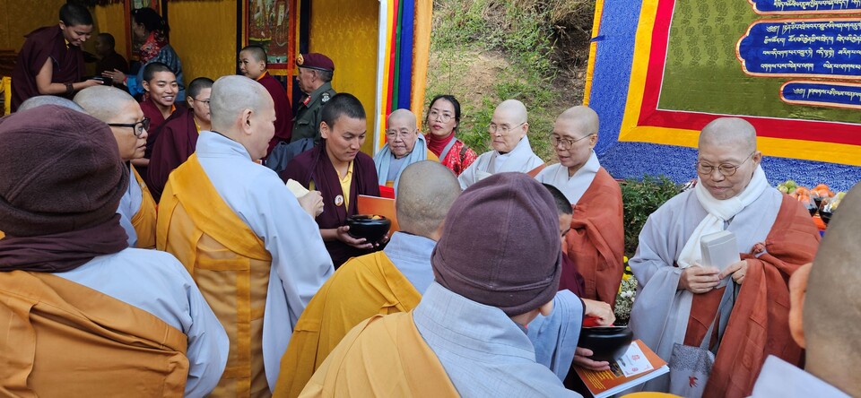 ÀÌ¿¡ ºÎź ºñ±¸´ÏÀç´Ü Ÿ½ÃÀå¸ð(Tashi Zangmo) »ç¹«ÃÑÀåÀº ¡°Çѱ¹ ºñ±¸´Ï ½º´ÔµéÀÇ Áö¿ø°ú Á÷Á¢ÀûÀÎ Âü°¡¸¦ ÅëÇØ ÃàÇÏÀλ縦 ÀüÇÔ¿¡ ¸Å¿ì °¨»çÇϰí Å« ÈûÀÌ µÇ¾ú´Ù¡±¸ç ¡°ºÎź ¿Õ´ëºñ(Her Majesty the Queen Mother)ÀÇ Çå½ÅÀûÀÎ ³ë·Â°ú Áöµµ·ÂÀ¸·Î ºñ±¸´Ï ½Â´ÜÀÌ ¸¶·ÃµÇ¾ú°í ºñ±¸´Ï ¼ö°è½ÄÀÇ Áö¼ÓÀº ºÒ±³ ÀüÅë¿¡¼ Áß¿äÇÑ ¿°¿øÀÎ »çºÎ´ëÁß(ºñ±¸, ºñ±¸´Ï, ¿ì¹Ù»õ, ¿ì¹ÙÀÌ)ÀÇ ¿ÏÀüÇÑ ½Â°¡¸¦ Çü¼ºÇÏ¿© ºÒ¹ý(Dharma)ÀÌ ÆòµîÇÏ°Ô ¹ø¼ºÇÒ ¼ö ÀÖµµ·Ï ÇÏ´Â °Í¡±À̶ó°í °Á¶Çß´Ù°í ÀüÇß´Ù. ¶ÇÇÑ ¡°¿Õ´ëºñÀÇ ÁöÁö°¡ ¹ÙÁî¶ó¾ß³ª(Vajrayana) ÀüÅë¿¡¼ ´õ ³ôÀº ¼ö°è(higher ordination)¸¦ ¿øÇÏ´Â ¿©¼ºµéÀ» À§ÇÑ ±æÀ» ¿¾îÁÖ´Â µ¥ µµ¿òÀÌ µÇ¾ú´Ù¡±¸ç ¡°À̹ø ¼ö°èÀǽÄÀÇ °ø´öÀÌ ¼¼°èÆòÈ, Æòµî, ±×¸®°í ¿©¼ºÀÇ ¿µÀû ¹ßÀüÀ» À§ÇØ È¸ÇâµÉ °Í¡±À̶ó°í ¹àÇû´Ù.