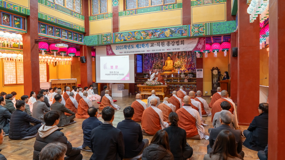 µ¿±¹´ë WISEÄ·ÆÛ½º´Â 12¿ù9ÀÏ ±³³» Á¤°¢¿ø ¹ý´ç¿¡¼ 2025Çг⵵ 2Çб⠱³Á÷¿ø Á¾° ¹ýȸ¸¦ ºÀÇàÇß´Ù. À̳¯ ¹ýȸ´Â µ¿±¹´ë ÀÌ»çÀå µ·°ü½º´ÔÀ» ¹ý»ç·Î ÃÊûÇÑ °¡¿îµ¥ ±³¼ö, Á÷¿ø, Çлý, ½Åµµ µî 300¿© ¸íÀÌ Âü¼®Çß´Ù.