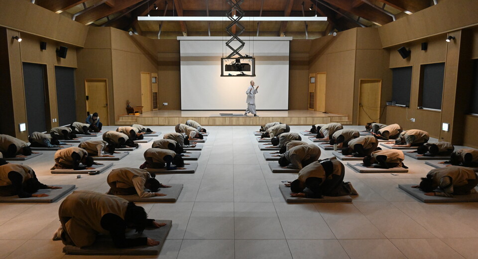 Àú³á ¿¹ºÒ ½Ã°£¿¡´Â ³«»ê»ç ¿¬¼ö°úÀå ¹ý¸í½º´ÔÀÇ ¾Ë±â ½¬¿î ÇØ¼³ÀÌ °çµé¿©Á³´Ù. Ä¥Á¤·Ê¿Í ¹Ý¾ß½É°æ µ¶¼ÛÀÇ Àǹ̸¦ ¹è¿ì¸ç Âü°¡ÀÚµéÀº ºÒ±³ ¿¹ÀýÀ» ÀÍÇû´Ù. À̾îÁö´Â ¡®¿ä°¡Çü 108¹è¡¯´Â ³«»ê»ç ÅÛÇýºÅ×ÀÌÀÇ ¹é¹Ì¿´´Ù. Àý µ¿ÀÛ »çÀÌ¿¡ ÆÈ°ú Ç㸮¸¦ Âß Æì´Â ¿ä°¡ ÀÚ¼¼¸¦ °áÇÕÇØ, À°Ã¼Àû ½Ã¿øÇÔ°ú ÇÔ²² 108¹øÀÇ ¹ø³ú¸¦ Çϳª¾¿ ³»·Á³õ´Â ½Ã°£À» °¡Á³´Ù.