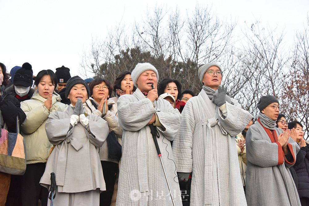 ¹ýȸ ÈÄ Âü°¡ÀÚµéÀº »õÇØ ù ¶±±¹À» ³ª´©¸ç µµ·®ÀÇ Àο¬°ø´öÀ» µÇ»õ°å´Ù. À̾î ÂüÁÁÀº¿ì¸®ÀýÀÌ ÀÚ¸®ÇÑ °è·æ»ê Á¤»ó¿¡ ¿Ã¶ó º´¿À³â ù ÀÏÃâÀ» ¸ÂÀÌÇϸç Àú¸¶´ÙÀÇ »õÇØ ¼Ò¸Á°ú ÇÔ²² ±¹Å¹ξÈ(ÏÐ÷ÁÚÅäÌ)°ú ¼¼°èÆòÈ­¸¦ °£ÀýÈ÷ ¹ß¿øÇß´Ù. »õº® ¾îµÒÀ» °¡¸£¸ç ¶°¿À¸¥ ÇØ´Â ¼öÇà°ú ¼­¿øÀÇ ±æÀ» ¹àÈ÷´Â »ó¡ÀÌ µÆ´Ù.