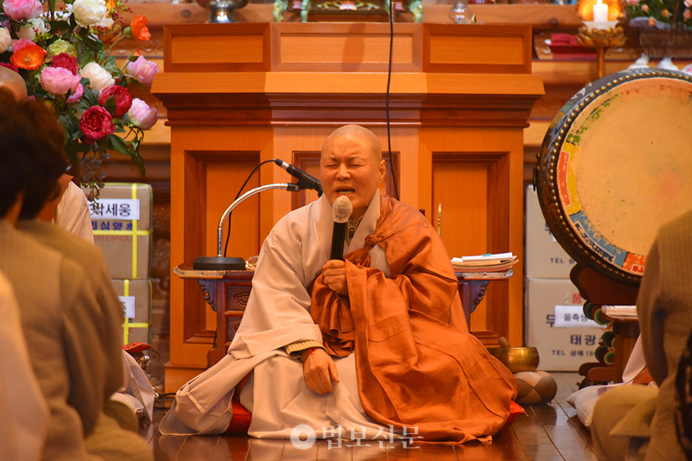 ȸÀÏ ½º´ÔÀº ¹ý¹®¿¡¼­ ºÎó´Ô ÀÇÁöÀÇ Á߿伺À» °Åµì °­Á¶Çß´Ù. ȸÀÏ ½º´ÔÀº ¡°±ú´ÞÀ½ÀÇ ±æ¿¡¼­µµ, »ïÀçÆÈ¶õÀ» ¸¶ÁÖÇÏ´Â »îÀÇ ÇöÀå¿¡¼­µµ ºÎó´ÔÀ» ÀÇÁöÇÏÁö ¾ÊÀ¸¸é¼­ ½º½º·ÎÀÇ Èû°ú ÁöÇý¸¸À¸·Î ¸ðµç °ÍÀ» ±Øº¹ÇÒ ¼ö ÀÖ´Ù°í »ý°¢ÇÑ´Ù¸é ±×°ÍÀ̾߸»·Î °¡Àå ¾î¸®¼®Àº »ý°¢¡±À̶ó¸ç ¡°¾ðÁ¦ ¾îµð¼­µç ºÎó´Ô²² ÀÇÁöÇÏ´Â »ç¶÷¸¸ÀÌ Àå¾Ö¸¦ ³Ñ°í ¾÷ÀåÀÌ ¼Ò¸êµÇ¸ç, ¿øÀº ¼ºÃëµÇ°í °¥µîÀº »ç¶óÁ® ÆòÈ­°¡ ÀúÀý·Î ÀÌ·ïÁø´Ù¡±°í ¼³Çß´Ù. ÀÌ¾î ¡°º´¿À³â ÇÑ ÇØ¿¡µµ Å©°í ÀÛÀº ¾î·Á¿òÀÌ ÀÖ°ÚÁö¸¸, ÇÑ ¸¶À½À» ¿À·ÔÀÌ ºÎó´Ô²² ÀÇÁöÇÏ°í ¹¯°í °È´Â ¼öÇàÀÇ ±æÀ» °£´Ù¸é ¸ðµç ¾î·Á¿òÀº Âüȸ¿Í Á¤ÁøÀ¸·Î ±Øº¹ÇÒ ¼ö ÀÖ´Ù¡±°í ´çºÎÇß´Ù.
