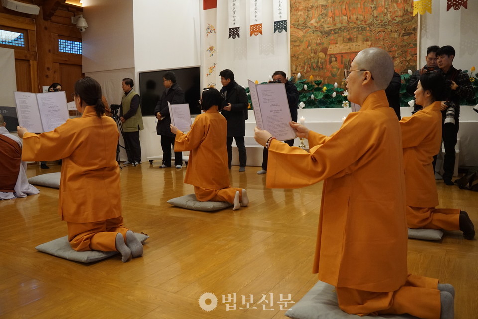 Á¤¹« ½º´ÔÀº ¼öÇà¿¡ ³ª¼´Â ÇàÀڵ鿡°Ô ¹ý¹®À» ¼³Çß´Ù. ÇàÀÚµéÀº ½º´Ô¿¡°Ô »ï¹è¸¦ ¿Ã¸®¸ç °¨»çÀÇ ¸¶À½À» ÀüÇß´Ù.