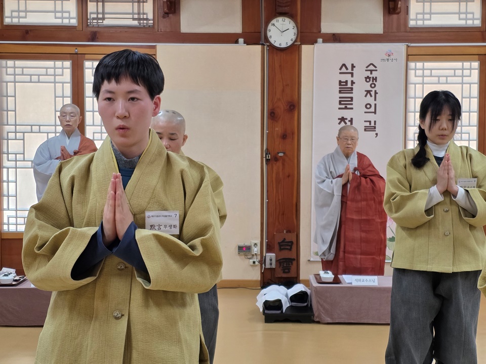 Ãâ°¡Çб³ ÀÔ¹æ ù °ü¹®Àº °¥¸¶ÀǽÄ. ºÀ³ç»ç Ãâ°¡Çб³Àå Áø»ó½º´ÔÀ» Áß½ÉÀ¸·Î À²ÁÖ Àû¿¬½º´Ô, ¼®Á±³¼ö µµÇý½º´Ô ¾Õ¿¡ »ï¹è¸¦ ¿Ã¸®°í ÀÚ½ÅÀÇ À̸§°ú ¹ý¸í ³ªÀ̸¦ ¸»ÇÑ µÚ ¾öÁßÇÑ ºÐÀ§±â ¼Ó¿¡¼­ °¥¸¶°¡ ÁøÇàµÆ´Ù. ½º´ÔµéÀº ¿ÂÈ­ÇÑ ¹Ì¼Ò·Î ÇàÀÚµéÀ» ¸Â¾ÒÁö¸¸, ÇàÀÚµéÀÇ Ç¥Á¤¿¡´Â ±äÀå°¨ÀÌ Èê·¶´Ù. °¥¸¶¸¦ ¸¶Ä¡°í À̾îÁø »è¹ß½Ä¿¡¼­´Â ¸¶À½À» ³½ 2¸íÀÇ ÇàÀÚ¸¦ Á¦¿ÜÇϰí´Â ÀϺΠ¸Ó¸®Ä«¶ô¸¸ Àß¶ó »è¹ßÀÇ Àǹ̸¦ »õ±â¸é¼­ ´ÙÇÔ²² ÂüȸÁø¾ðÀ» ¿Ü¾ú´Ù. À²ÁÖ ½º´ÔÀº ¡°»è¹ßÇÏ´Â ¸¶À½Àº ¿¬²ÉÀÌ ÇØ¸¦ ±â´Ù¸®µí ÇÏ´Â ¹ý¡±À̶ó¸ç ¡°Àá½Ã ÇàÇÏ´Â »è¹ßµµ ±ú´ÞÀ½À» ¾ò´Â ¾¾¾ÑÀÌ µÇ³ª´Ï, »è¹ßÇÏ°í ¿­¹ÝÀ» ÁõµæÇ϶󡱷ΠÇß´Ù. À̾î ÇàÀÚµéÀº Àå±¥ÇÕÀåÀ» ÇÏ°í ¾î¸¥ ½º´ÔµéÀÌ ³»·ÁÁֽŠ¹ß¿ì¸¦ ¸Ó¸®¿¡ ¿Ã·È´Ù. À²ÁÖ ½º´ÔÀº ¡°¶§¹¯Áö ¾ÊÀº ûÁ¤ÇÑ ¹ß¿ì¸¦ ÀüÇϳë´Ï ¸¶¶¥È÷ ¼¼»ó Áß»ýÀÇ º¹Àü(ÜØï£)ÀÌ µÇ¾î °Å·èÇÑ ºÎó´Ô °¡¸£Ä§À» ³Î¸® º£Ç®Áö¾î´Ù¡±¶ó°í ¸»ÇÏ°í ¡°»è¹ßÇÏ¿© ¶æÀ» ¼¼¿ö °è¸¦ Áö۰í, ¾ÖÂøÀ» ²÷À¸¸é ½ÈÀ½À» µÎÁö ¾Ê´À´Ï¶ó. Ãâ°¡ÇÏ¸é ¹ø³úÀÇ ÁýÀ» ¶°³ª ¼º½º·¯¿î Áø¸® ÀüÇÏ´Â ÀÏÀÌ´Ï ÀÏü Áß»ýÀ» Àß Á¦µµÇÏ±æ ¹Ù¶õ´Ù¡±°í ´çºÎÇß´Ù.