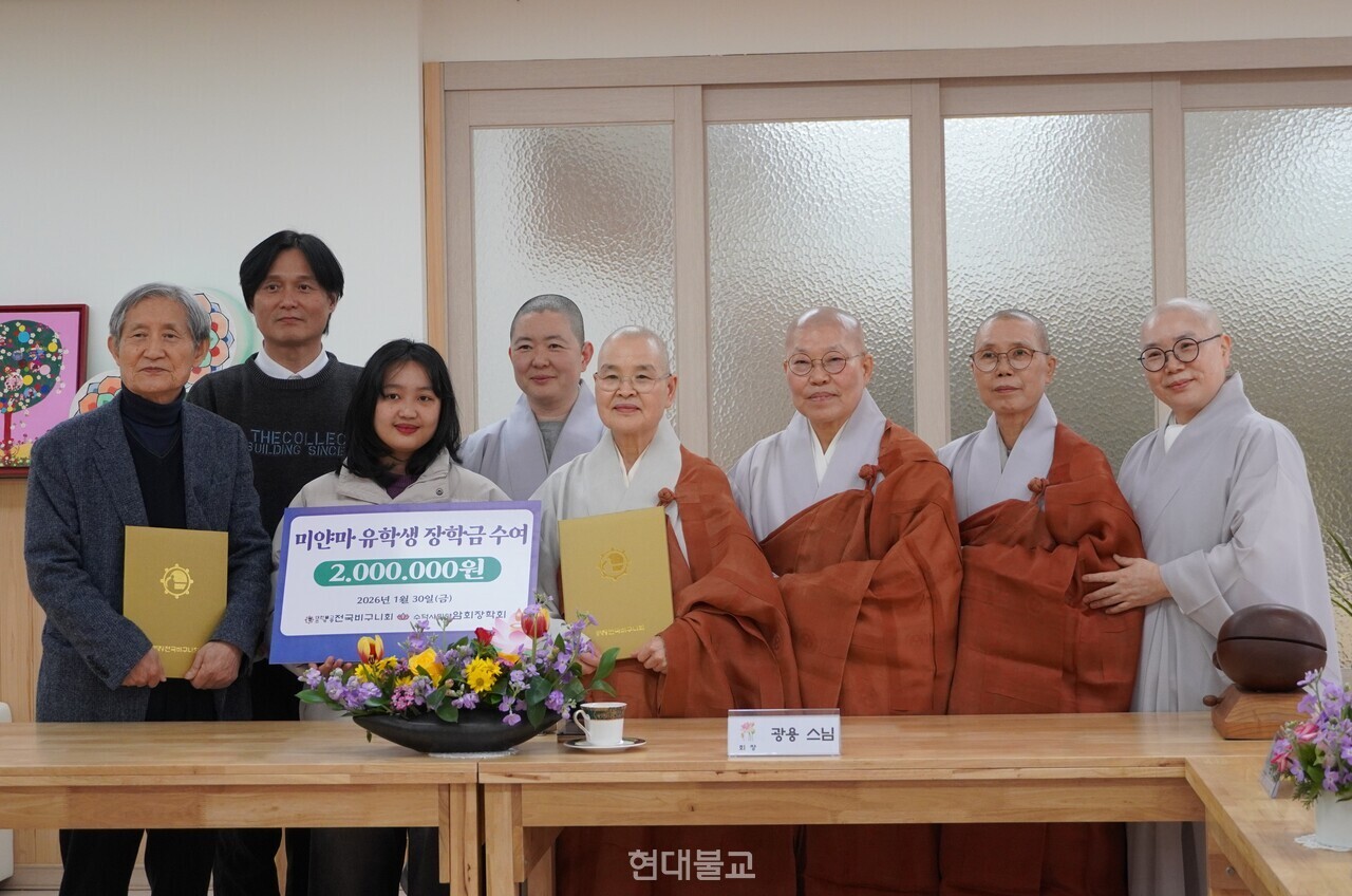 ±¤¿ë ½º´ÔÀº 3¿ùºÎÅÍ µ¿±¹´ë °æ¿µÇаú¿¡¼ ¼öÇÐÇÒ Åæ ³×ÀÌÈê¶óÀ×(Thone NadeHlaing) Çлý¿¡°Ô 200¸¸¿øÀ» ¼ö¿©ÇÏ¸ç ¡°ÀåÇбÝÀÌ ¹è¿òÀÇ ±æ¿¡ µçµçÇÑ µµ¿òÀÌ µÇ±æ ¹Ù¶õ´Ù. Çо÷¿¡ Àü³ä, »çȸ¿¡ ±â¿©ÇÏ´Â ÀÎÀç·Î ¼ºÀåÇÏ±æ ±â´ëÇÑ´Ù¡±°í ÀÀ¿øÇß´Ù.