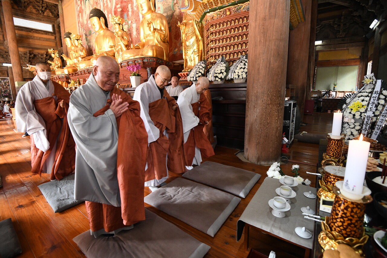 ¿ì¼® ½º´ÔÀº Àλ縻¿¡¼ ¡°È¾ö¹®µµ´Â ¼±´ë ´ë´ö ½º´ÔµéÀÇ ¼öÇà°ú ¿ø·ÂÀÌ ¸ð¿© ¿À´ÃÀÇ °¡Ç³À» ÀÌ·ç¾ú´Ù¡±¸ç ¡°Æ¯È÷ ¾î¸¥ ½º´Ôµé²²¼ ³²±â½Å ÈÇÕ°ú ¼öÇàÀÇ Á¤½ÅÀ» ¹ÙÅÁÀ¸·Î ¹®µµ ´ëÁßÀÌ ÇÔ²² Àü¹ý°ú Æ÷±³ÀÇ ±æÀ» À̾°í ÀÖ´Ù¡±°í ¸»Çß´Ù.