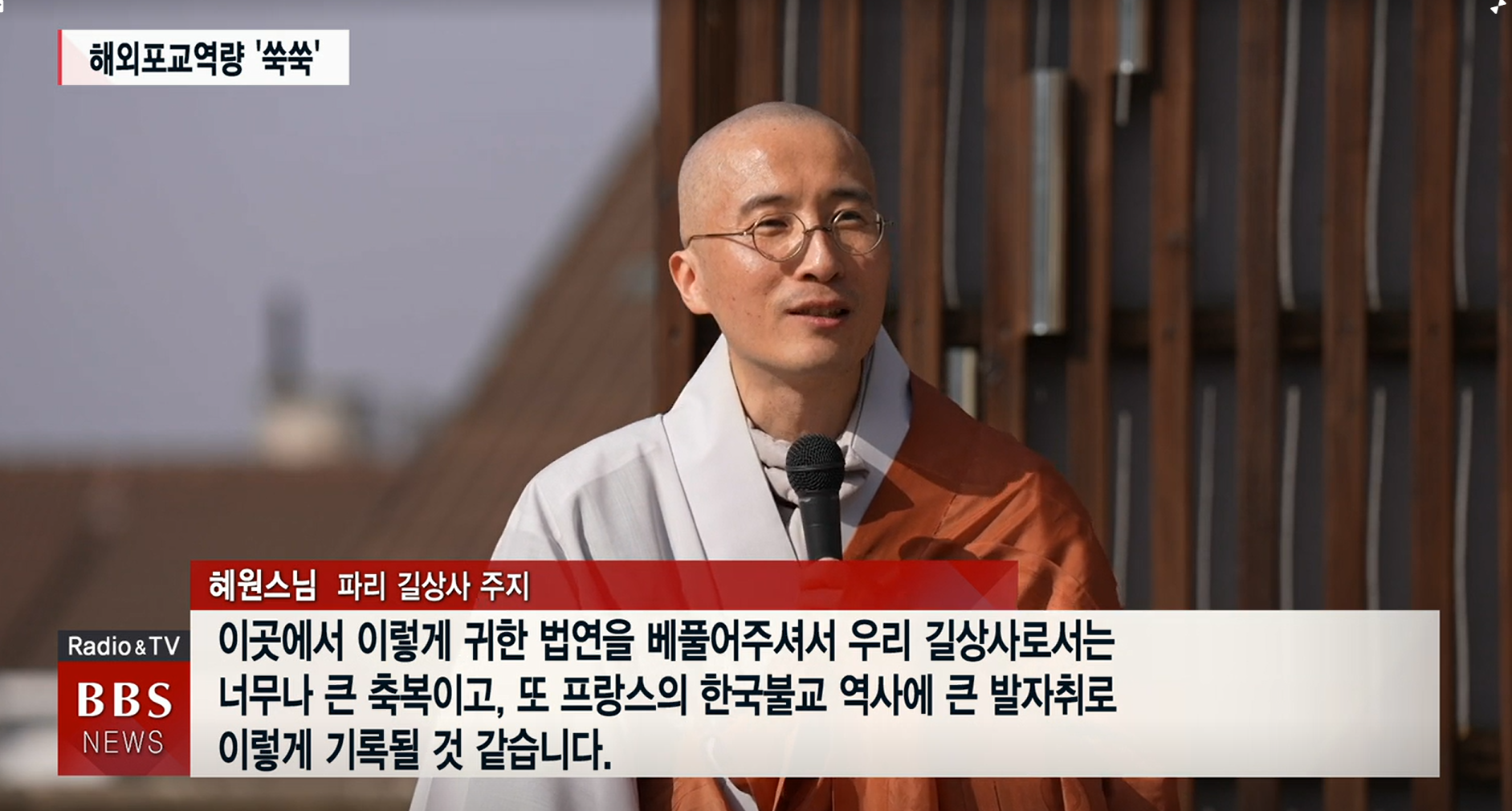 "À̰÷¿¡¼­ ÀÌ·¸°Ô ±ÍÇÑ ¹ý¿¬À» º£Ç®¾îÁּż­ ¿ì¸® ±æ»ó»ç·Î¼­´Â ³Ê¹«³ª Å« ÃູÀÌ°í ¶Ç ÇÁ¶û½ºÀÇ Çѱ¹ ºÒ±³ ¿ª»ç¿¡ Å« ¹ßÀÚÃë·Î ÀÌ·¸°Ô ±â·ÏµÉ °Í °°½À´Ï´Ù. ¿ì¸® µ¿Æ÷µé¿¡°Ô´Â ÀØÇôÁ®°¡´Â Çѱ¹ÀÇ ÀüÅë ¹®È­¸¦ ´Ù½Ã±Ý ¹ß°ßÇÒ ¼ö ÀÖ´Â ±âȸ°¡ ¸¶·ÃÀÌ µÇ°í ±×¸®°í ÇÁ¶û½º ºÐµé¿¡°Ô´Â ¶Ç ¾Æ¸§´Ù¿î Çѱ¹ ºÒ±³ÀÇ ¹®È­¿Í ¼öÇà ÀüÅëÀ» ¹ß°ßÇÒ ¼ö ÀÖ´Â °è±â°¡ µÇ±â¸¦ Èñ¸ÁÇØ º¸°Ú½À´Ï´Ù."
