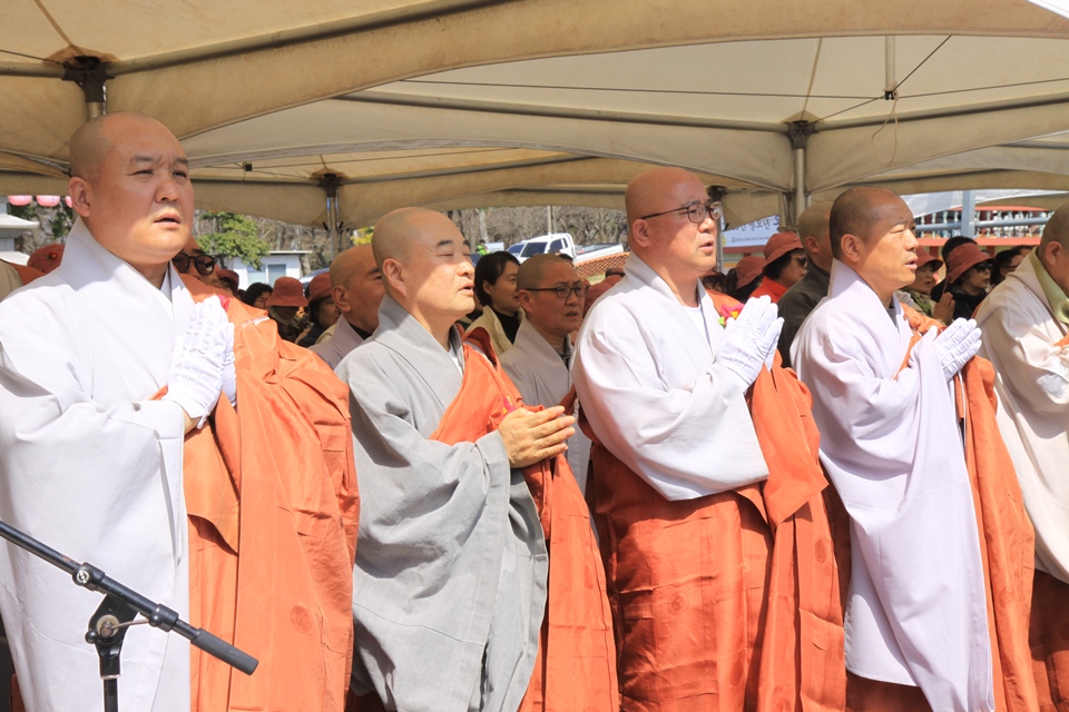 Á¶°èÁ¾ Ãѹ«¿øÀå Áø¿ì½º´ÔÀº °üÀ½»ç ÁÖÁö Çã¿î½º´ÔÀÌ ´ëµ¶ÇÑ Ãßµµ»ç¸¦ ÅëÇØ ¡°¿À´Ã À§·ÉÀç´Â ´Ü¼øÇÑ ½½ÇÄÀÇ ¹ÝÃß°¡ ¾Æ´Ñ Àí´õ¹Ì ¼Ó¿¡¼µµ ´Ù½Ã ¸¼Àº ¿¬²ÉÀ» ÇÇ¿ö³»µí ¾ÆÇ °ú°Å¸¦ µó°í ³»ÀÏ·Î ³ª¾Æ°¡±â À§ÇÑ ¼þ°íÇÑ ¹ß°ÉÀ½¡±À̶ó¸ç ¡°À̸¦ À§ÇØ ºÒ±³°è Èñ»ýÀÚ¿Í ÇÇÇØ»çÂû¿¡ ´ëÇÑ ¿ÂÀüÇÑ Áø»ó±Ô¸í°ú ±¹°¡ Â÷¿øÀÇ ±â³ä»ç¾÷ÀÌ ¹Ýµå½Ã ÀÌ·ç¾îÁ® ¿ª»çÀÇ Á¤Àǰ¡ ¹Ù·Î¼±â¸¦ °£ÀýÈ÷ ±â¿øÇÑ´Ù¡±°í Çß´Ù. ÀÌ¾î ¡°Èñ»ýÀںеéÀÇ ¾ï¿ïÇÑ Á×À½ÀÌ °áÄÚ ÇêµÇÁö ¾Êµµ·Ï, ¿ì¸®´Â ÀÌ ¾ÆÇ ±â¾ïÀ» ¡®»ó»ý°ú ÈÇÕ¡¯À̶ó´Â ¹Ì·¡ÀÇ ºûÀ¸·Î ½ÂȽÃų °Í¡±À̶ó¸ç ¡°»óóÀÔÀº Á¦ÁÖÀÇ ¶¥ÀÌ ÁøÁ¤ÇÑ Âüȸ¿Í ÆòÈÀÇ Á¤Åä(ïä÷Ï)·Î °Åµì³ª´Â ±×³¯±îÁö ³²Àº ¿ì¸®°¡ ÁöÇý¸¦ ¸ð¾Æ °É¾Æ³ª°¡°Ú´Ù¡±°í °Á¶Çß´Ù.