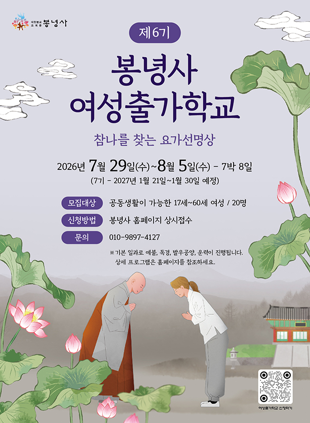 ºñ±¸´Ï ½Â°¡ ±³À°Æ÷±³µµ·®, ¼ö¿ø ºÀ³ç»ç(ÁÖÁö Áø»ó½º´Ô)°¡ ¿Ã¿©¸§ ¡®Âü³ª¸¦ ã´Â ¿ä°¡¼±¸í»ó¡¯À» ÁÖÁ¦·Î Á¦6±â ºÀ³ç»ç ¿©¼ºÃâ°¡Çб³¸¦ ¹®¿¬´Ù. 7¿ù29ÀϺÎÅÍ 8¿ù5ÀϱîÁö 7¹Ú8Àϰ£ ¿­¸®´Â À̹ø ºÀ³ç»ç Ãâ°¡Çб³´Â ½É½ÅÀÌ °Ç°­Çϰí Ãâ°¡Çб³ Âü¿© ¸ñÀûÀÌ ºÐ¸íÇϸç, °øµ¿»ýȰÀÌ °¡´ÉÇÑ 17¼¼~60¼¼ ¿©¼ºÀÌ¸é ´©±¸³ª µ¿ÂüÇÒ ¼ö ÀÖ´Ù.