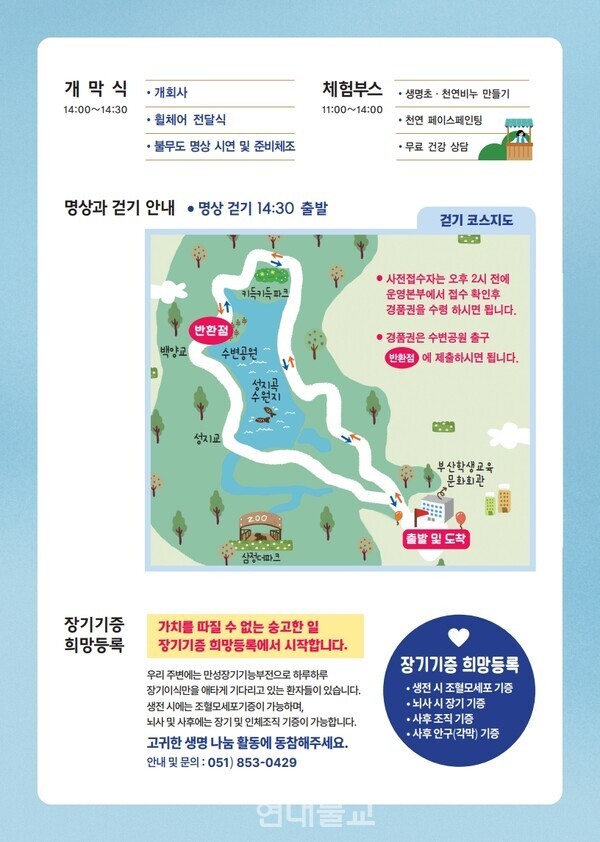 »ý¸í³ª´® ºÎ»ê °ü°èÀÚ´Â ¡°À̹ø Çà»ç´Â Àå±â±âÁõÀ̶ó´Â °í±ÍÇÑ ½ÇõÀ» ¾Ë¸®°í, »ý¸í³ª´®À¸·Î ÇÔ²² »ç´Â ¼¼»óÀ» ¸¸µé±â À§ÇÑ ÀÚ¸®¡±¶ó¸ç ¡°°¡Á·, µµ¹Ýµé°ú ÇÔ²² °ÉÀ¸¸ç °Ç°µµ ì±â°í »ý¸í³ª´®ÀÇ Àǹ̵µ µÇ»õ±â´Â À̹ø °È±â´ëȸ¿¡ ¸¹Àº ºÐÀÇ °ü½É°ú µ¿ÂüÀ» ¹Ù¶õ´Ù¡±°í ¹àÇû´Ù.