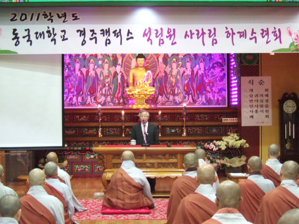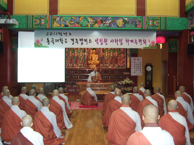 9¿ù 3ÀÏ µ¿±¹´ë °æÁÖÄ·ÆÛ½º Á¤°¢¿ø¿¡¼ 2555³â ÇϾȰм®¸²È¸ ¿¬¼ö°¡ ½ÃÀ۵Ǿú´Ù. ¼®¸²µ¿¹®È¸¿¡¼´Â »ç¹«ÃÑÀå ÀåÀû½º´Ô, Ãѹ«ºÎÀå Á¤¹ü½º´ÔÀÌ µ¿ÂüÇϼ̰í, Á¤°¢¿øÀå ȶû½º´Ô, µ¿´ë ±è¿µÁ¾ ÃÑÀå´Ô ¹× ¿î¿µº»ºÎÀå´Ô µîµµ ÇÔ²² Çϼ̴Ù. ¿¬¼ö´Â 1¹Ú 2ÀÏ ÀÏÁ¤À¸·Î ÁøÇàµÇ¾úÀ¸¸ç, Á¶°èÁ¾ÀÇ ÀüÅ뼺, ½ÀÀÇ, »ó´ã½É¸® µîÀ» ±³À°¿øÀå ÇöÀÀ½º´Ô µî Àú¸íÇÑ °»çÁøÀ» ¸ð½Ã°í ¿¬¼ö¸¦ ÁøÇàÇÏ¿´´Ù.