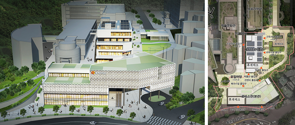 'ÈÀïÇü ÀÎÀç'ÀÇ »ê½Ç, ·ÎÅͽº°üÀº µ¿±¹ÀÇ °ú°Å, ÇöÀç, ¹Ì·¡¸¦ ǰ½À´Ï´Ù. Ä·ÆÛ½º ³» À¯ÀÏÇÏ°Ô ´ë·Î¿Í ¸Â´êÀº ÁöÁ¡¿¡ °Ç¸³µÉ ·ÎÅͽº°üÀº µ¿±¹ÀÇ »õ·Î¿î Á¤¹®ÀÌÀÚ µµ½ÃÀÇ ·£µå¸¶Å©°¡ µÉ °ÍÀÔ´Ï´Ù. Â÷·® °ÔÀÌÆ®¸¦ ½Å¼³ÇØ Á¢±Ù¼ºÀÌ Å©°Ô °³¼±µÇ¸ç ´ëÇü ÄÁº¥¼ÇȦ°ú Çб³ ¿ª»ç°ü, ¹Ú¹°°ü, ¼±¼¾ÅÍ µîÀÌ µé¾î¼°í °ÀǽÇ, ¼¼¹Ì³ª½Ç, ±³¼ö¿¬±¸½Ç µî ±³À°¿¬±¸°ø°£µµ È®ÃæµË´Ï´Ù. µ¿¹®°ú ½Ã¹ÎµéÀ» À§ÇÑ ¼ÒÅë °ø°£µµ ¸¶·ÃµË´Ï´Ù.