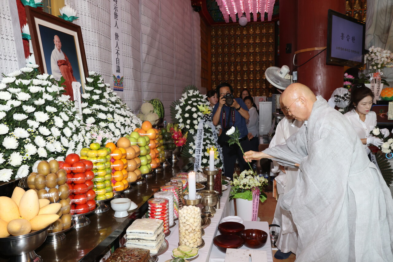 ¹Ì·æ´ç ¿ùź´ëÁ¾»ç ¿¹Ý 2ÁÖ±â Ã߸ð´Ù·Ê°¡ 8¿ù10ÀÏ Ã»ÁÖ ¿ëȻ翡¼ ºÀÇàµÈ °¡¿îµ¥ ¹®µµ´ëÇ¥ ¼º¿î½º´ÔÀÌ Çåȸ¦ Çϰí ÀÖ´Ù.