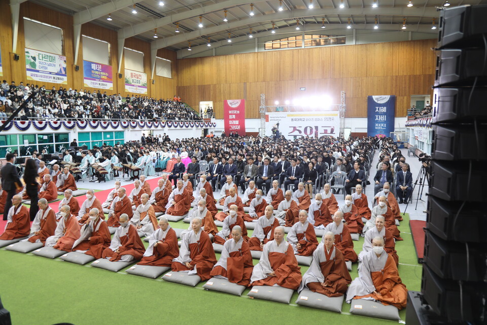 ¼ö°è¹ýȸ´Â Àü°è´ëÈ»óÀ¸·Î ÀÌ»çÀå µ·°ü½º´ÔÀ» Ã»ÇØ ÁøÇàµÆ´Ù. µ·°ü½º´ÔÀº ¼ö°èÀǽĿ¡ ¾Õ¼ ¡°ÀÌ ÀÚ¸®´Â µ¿±¹´ë ¿ÍÀÌÁîÄ·ÆÛ½º ÁÖÀΰø 1800¸íÀÌ °¸²ÇÏ´Â ¼ø°£ÀÌ´Ù. ÀÌ ¼ø°£Àº µ¿±¹ 118Ò´ ¿ª»ç¿¡ ±â·ÏµÉ °ÍÀÌ¸ç ¡®°¨µ¿¡¯À̶ó´Â µÎ ±ÛÀڷΠǥÇöµÉ °ÍÀÌ´Ù¡±¶ó°í ¸»Çß´Ù.