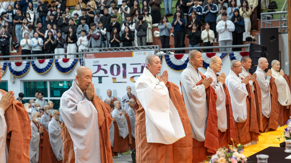 ¶ÇÇÑ µ¿±¹´ë ±³°»ç ¹× ÇÐÀνº´Ô µî 90¿©¸íÀÇ ½º´ÔµéÀÌ ´ëÇлýµé¿¡°Ô ¿¬ºñ¸¦ ³»·È´Ù. ¿¬ºñ ÀǽÄÀº Çâ ´ë½Å ´ÜÁÖ¸¦ ä¿öÁÖ´Â ¹æ½ÄÀ¸·Î ÁøÇàµÆ´Ù.