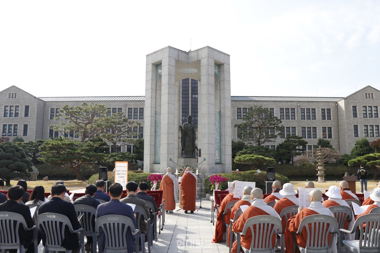 À±Àç¿õ ÃÑÀåÀº ¡°ÆÈÁ¤µµÀÇ Ã»µ¿¿©·¡ºÒ»óÀº ºÒ±³ Á¾¸³´ëÇÐÀÎ µ¿±¹´ëÀÇ ´ëÇ¥ ¾ÆÀÌÄÜ¡±À̶ó¸ç "ÆÈÁ¤µµ µ¿ÆÇÀ» »õ·Î Á¦ÀÛÇØ ±¤Àå Áß¾Ó¿¡ ¼³Ä¡ÇÒ °èȹ"À̶ó°í ¹àÇû´Ù. ÀÌ¾î ¡°ºÎó´ÔÀÇ °¡¸£Ä§ÀÎ ¡®ÆÈÁ¤µµ(ø¢ïáÔ³)¡¯¸¦ Á÷Á¢ üÇèÇϰí, µ¿±¹ÀεéÀÌ µ¿±¹ ¹ßÀüÀ» À§ÇØ ÇѸ¶À½À¸·Î °°ÀÌ °É¾î°¡±â¸¦ ¹Ù¶õ´Ù¡±¶ó°í ÀλçÇß´Ù.