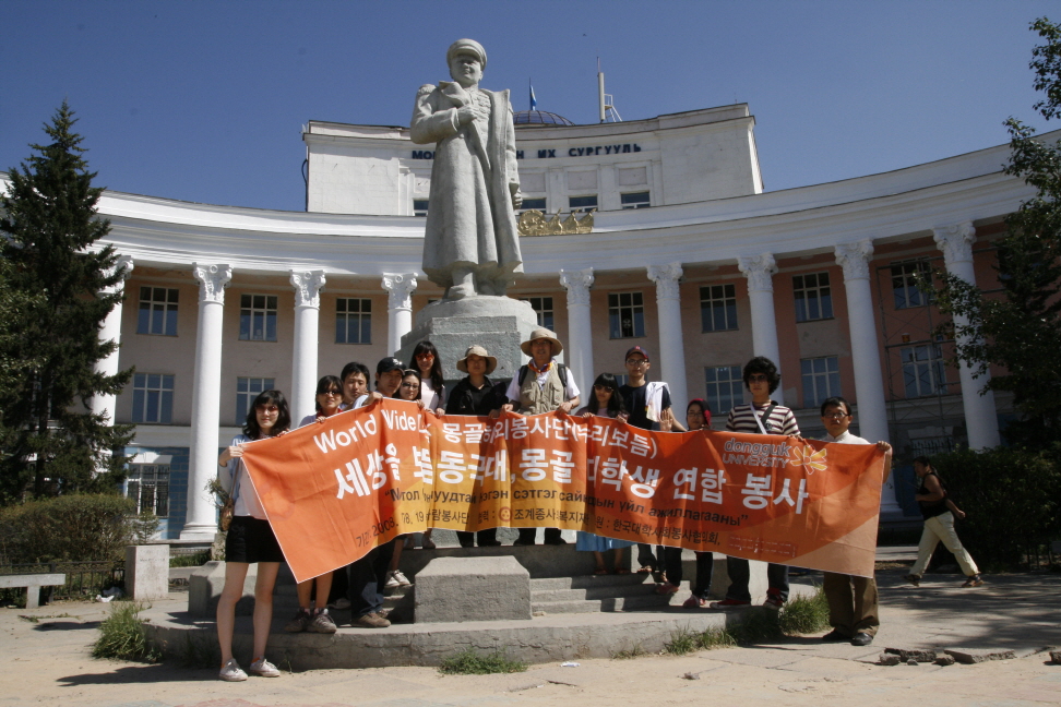 µ¿±¹´ë µ¿±¹Âü»ç¶÷ºÀ»ç´ÜÀº Áö³ 4ÀϺÎÅÍ ¿À´Â 14ÀϱîÁö ¸ù°ñ ¿ï¶õ¹ÙÅ丣 Áö¿ªÀ¸·Î ÇØ¿ÜºÀ»ç´ÜÀ» ÆÄ°ßÇØ ÀÚ¿øºÀ»çȰµ¿À» Àü°³Çß´Ù. Á¶°èÁ¾»çȸº¹ÁöÀç´ÜÀÇ Çù·ÂÀ¸·Î ÁøÇàµÈ À̹ø ÇØ¿ÜºÀ»ç´Â µ¿±¹´ë ÀçÇлý 20¸í°ú ¸ù°ñ ÇöÁö ´ëÇлý 20¸íÀ¸·Î ±¸¼ºµÅ ¿¬ÇÕºÀ»çȰµ¿À¸·Î ÁøÇàµÆ´Ù.