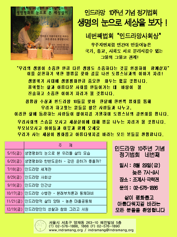 ¹ý»ç : µµ¹ý½º´Ô(Àεå¶ó¸Á»óÀÓ´ëÇ¥, »ý¸íÆòÈŹ¹ß¼ø·Ê´ÜÀå, Àü ½Ç»ó»ç ÁÖÁö)