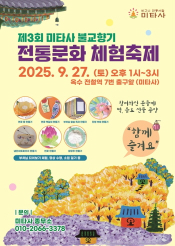 ¹ÌŸ»ç´Â 9¿ù 17ÀÏ ¡°¿À´Â 9¿ù 27ÀÏ ¡®ºÒ±³ ÀüÅë¹®È Ã¼ÇèÃàÁ¦¡¯¸¦ °³ÃÖÇÑ´Ù¡±°í ¹àÇû´Ù. À̹ø ÃàÁ¦´Â Á¶°èÁ¾ ¹®ÈºÎ(ºÎÀå ¼º¿ø ½º´Ô) Áö¿øÀ¸·Î ¸¶·ÃµÆÀ¸¸ç, µµ·® ³» 300³â º¸È£¼ö ´ÀƼ³ª¹« ¾Æ·¡¿¡¼ ºÒ±³¹®È üÇèºÎ½º, ¸í»ó¼öÇà, ¼Ò¿ø °É±â µîÀÇ ÇÁ·Î±×·¥ÀÌ ¿î¿µµÈ´Ù.