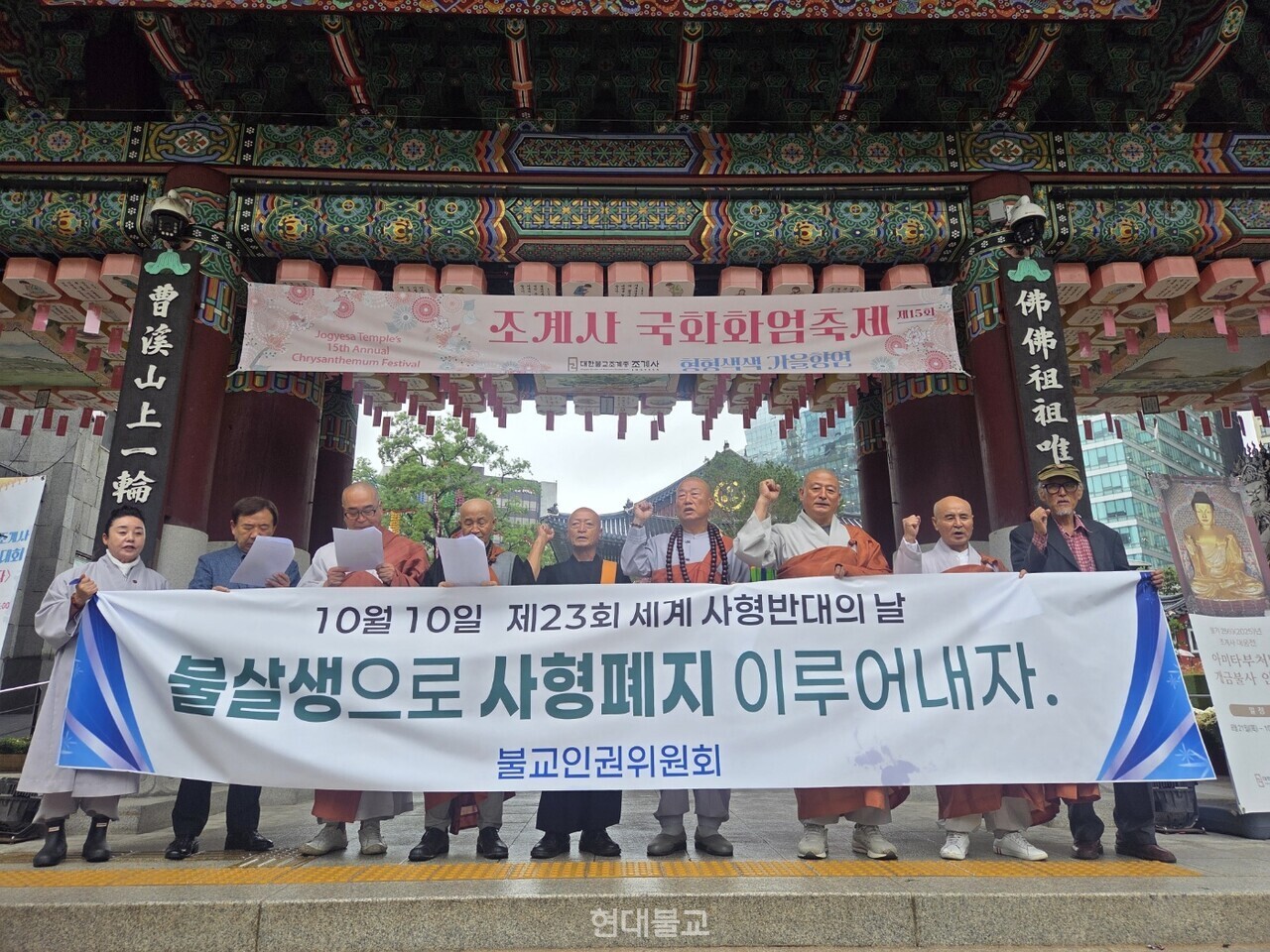10¿ù 10ÀÏ Á¦23ȸ ¼¼°è »çÇü ÆóÁöÀÇ ³¯À» ¸Â¾Æ ºÒ±³ÀαÇÀ§¿øÈ¸(°øµ¿´ëÇ¥ Áø°ü‧µµ°ü ½º´Ô)°¡ ¼¿ï Á¶°è»ç ÀÏÁÖ¹® ¾Õ¿¡¼ ±âÀÚȸ°ßÀ» ¿°í »çÇüÁ¦ Áï°¢ ÆóÁö¸¦ Ã˱¸ÇÏ´Â ¼º¸íÀ» ¹ßÇ¥Çß´Ù.