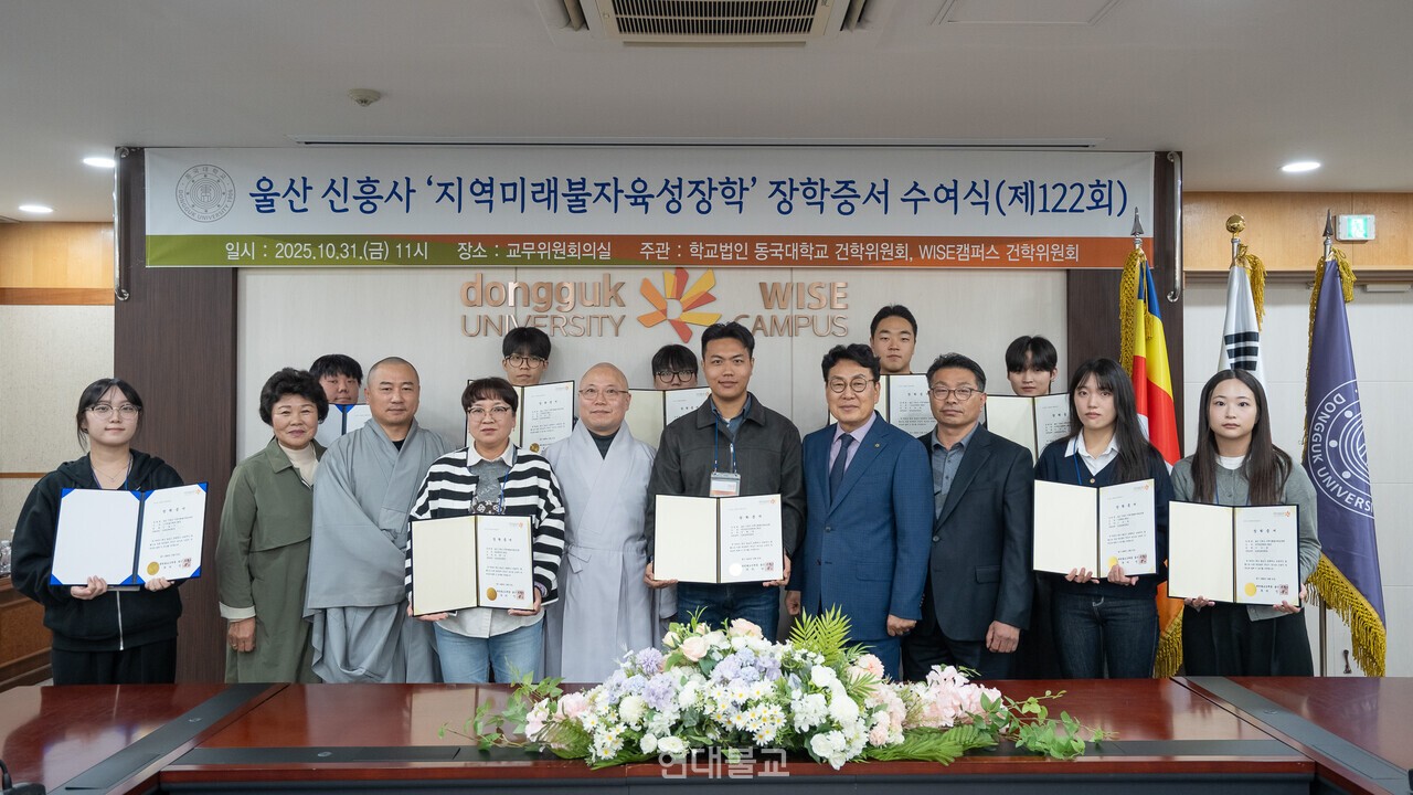 ¿ï»ê ½ÅÈï»ç(ÁÖÁö ÀÎ°æ ½º´Ô)°¡ Áö¿ª û³â ºÒ±³ÀÎÀç À°¼ºÀ» À§ÇØ 10¿ù 31ÀÏ µ¿±¹´ëÇб³ WISEÄ·ÆÛ½º¿¡ ÀåÇÐ±Ý 1000¸¸ ¿øÀ» Àü´ÞÇß´Ù. ÀåÇÐ±Ý Àü´ÞÀº ¹éÁÖ³â±â³ä°ü ±³¹«À§¿øÈ¸Àǽǿ¡¼ ¿¸° ¡®Á¦122ȸ Áö¿ª¹Ì·¡ºÒÀÚÀ°¼ºÀåÇС¯ ÀåÇÐÁõ¼ ¼ö¿©½Ä¿¡¼ ÁøÇàµÆ´Ù.