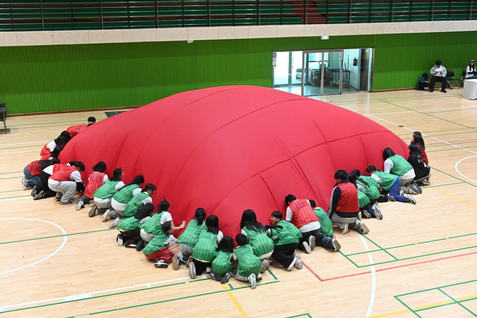 ¹ß´ë½Ä¿¡ ÀÌ¾î ¿¸° 'ÇѸ¶À½¿îµ¿È¸'¿¡¼´Â û¼Ò³âµéÀÇ ¹àÀº ¿ôÀ½²ÉÀÌ ¸¸¹ßÇß´Ù. ±¹°¡À¯»êÀ» ¼öÈ£ÇÏ´Â »çõ¿ÕÀÇ Àǹ̸¦ ´ã¾Æ 200¸íÀÇ ÇлýµéÀÌ Áö±¹Ãµ¿ÕÆÀ(¿µ¼°í), ±¤¸ñõ¿ÕÆÀ(Ⱦ¼º°í, ¼Ò¾çÁß, ºÀÀǰí, ¼º¼ö¿©°í, Ãáõ°í, ÇÑ»ù°í, ȫõ³ó¾÷°í), ÁõÀåõ¿ÕÆÀ(°í¼ºÁß, ¹®¸·°í, ¿øÁÖ±ÝÀ¶È¸°è°í), ´Ù¹®Ãµ¿ÕÆÀ(´ëÁø°í, °¸ª¹®¼º°í, ÁøºÎÃÊ) µî 4°³ ÆÀÀ¸·Î ³ª´² ¿îµ¿È¸¸¦ Áñ°å´Ù. ÇлýµéÀº °ø ±¼¸®±â, ´Üü Áٳѱ⠵î Çùµ¿½ÉÀ» ¿ä±¸ÇÏ´Â ´Ùä·Î¿î ÇÁ·Î±×·¥¿¡ Âü¿©Çß´Ù. óÀ½¿¡´Â ´Ù¼Ò ³¸¼³¾îÇÏ´ø Çлýµéµµ ÇÔ²² ¶¡À» È긮°í È£ÈíÀ» ¸ÂÃß¸ç ¾î´Àµ¡ Çϳª°¡ µÅ ²ö²öÇÑ ¿ì¾Ö¸¦ ´ÙÁ³´Ù.