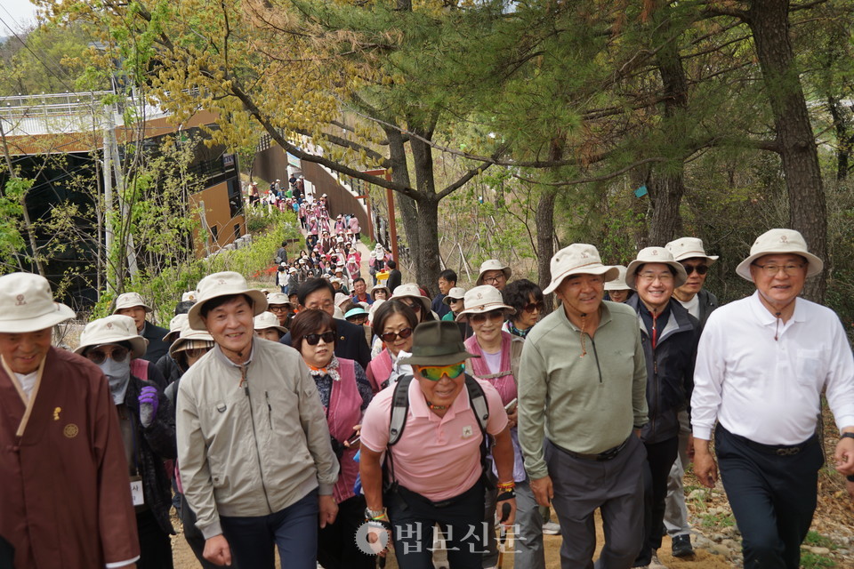 ¾ö ȸÀåÀ» ¼±µÎ·Î 500¿© ¸íÀÇ »çºÎ´ëÁßÀº ¿ë±Ã»ç¸¦ Ãâ¹ßÇØ Àܵµ±æ°ú ´ÞÆØÀÌÀü¸Á´ë, ±Ý½Ã´ç, ¼öº¯±æÀ» °ÅÃÄ ´Ù½Ã ¿ë±Ã»ç·Î µ¹¾Æ¿À´Â 5.5km ÄÚ½º¸¦ °É¾ú´Ù. Âü°¡ÀÚµéÀº ¿À¸£¸·±æ¿¡¼ ¼·Î¿¡°Ô ¹°À» °Ç³×°í ºÎÃàÇÏ¸ç °ÉÀ½À» À̾´Ù. ¶Ç °Ý·ÁÀÇ ¸»À» °Ç³×°í ÀÏ»óÀ» À̾߱âÇÏ¸ç ¼ÒÅëÇß´Ù. ³ª¾Æ°¡ ÁÖº¯ °æÄ¡¸¦ ¹Ù¶óº¸¸ç Àâ³äÀ» ºñ¿ö³Â´Ù. ÀÌ´Â ºÒÀÚ °£ ¿¬´ë¿Í ÈÇÕ ¼Ó¿¡¼ Àü¹ý ÀÇÁö¸¦ ´ÙÁö·Á´Â Æ®·¹Å·ÀÇ ÃëÁö¿¡ °É¸ÂÀº ¸ð½ÀÀ̾ú´Ù.