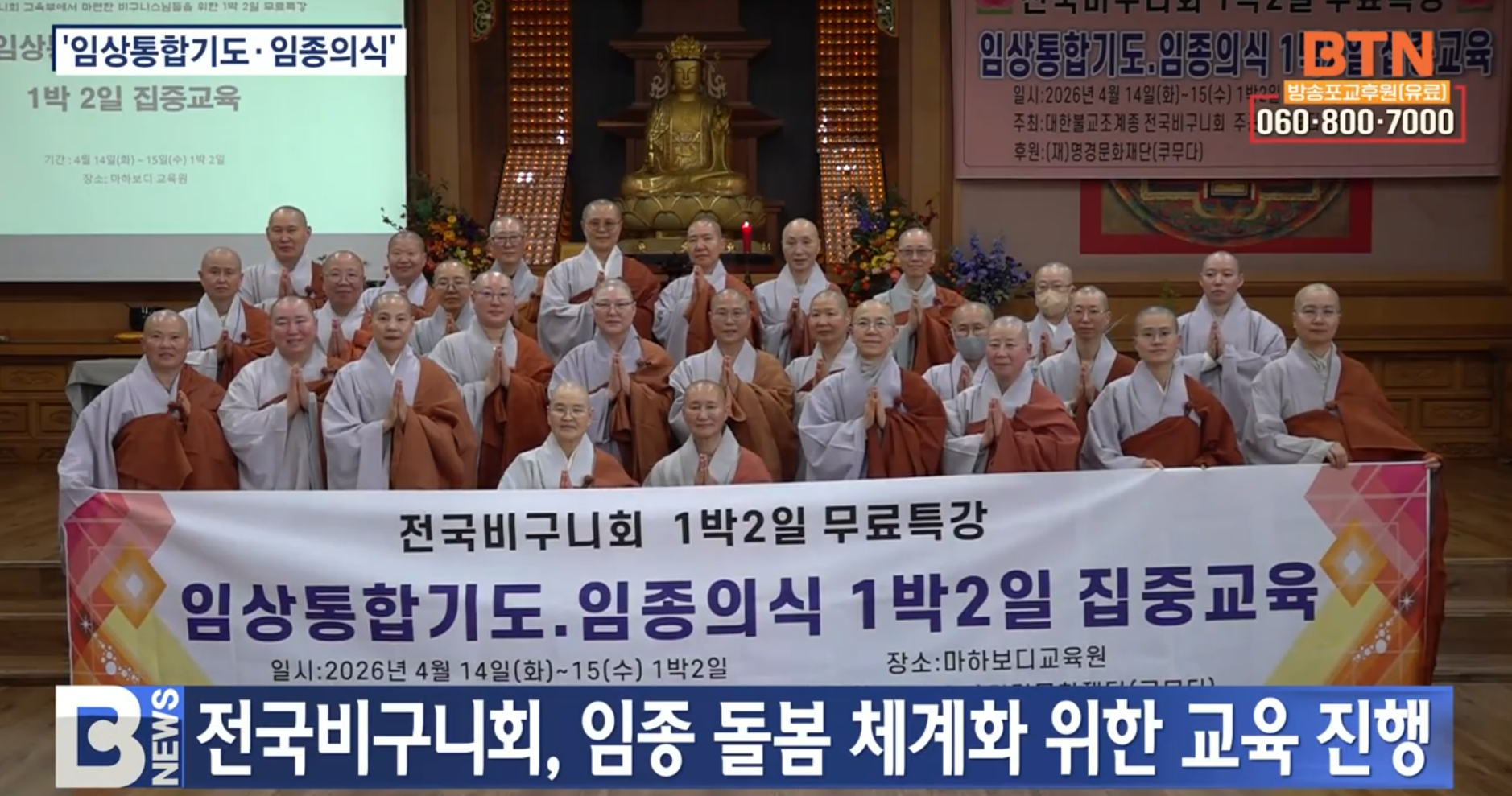 Àü±¹ºñ±¸´Ïȸ ±³À°ºÎ´Â Áö³­ 14ÀϺÎÅÍ 15ÀϱîÁö ¿ï»ê ¿ïÁÖ±º Á¤Åä»ç°üÀÚÀçȸ ¸¶ÇϺ¸µð±³À°¿ø¿¡¼­ 30¿© ¸íÀÇ ½º´ÔµéÀÌ Âü°¡ÇÑ °¡¿îµ¥ ºÒ±³Àû Á×À½ÀÇ ÀÌÇØ¿Í ¿µÀû µ¹º½ÀÇ Ã¼°èÈ­, ½Â°¡ÀüÅëÀÇ ÀÓÁ¾Àǽİú ÀÔ°ü ½Ç½À µî ÀÓÁ¾ Àü °úÁ¤À» ¾Æ¿ì¸£´Â ½Ç¹« Áß½ÉÀÇ ÁýÁß ±³À° ÇÁ·Î±×·¥À» °³ÃÖÇß½À´Ï´Ù.